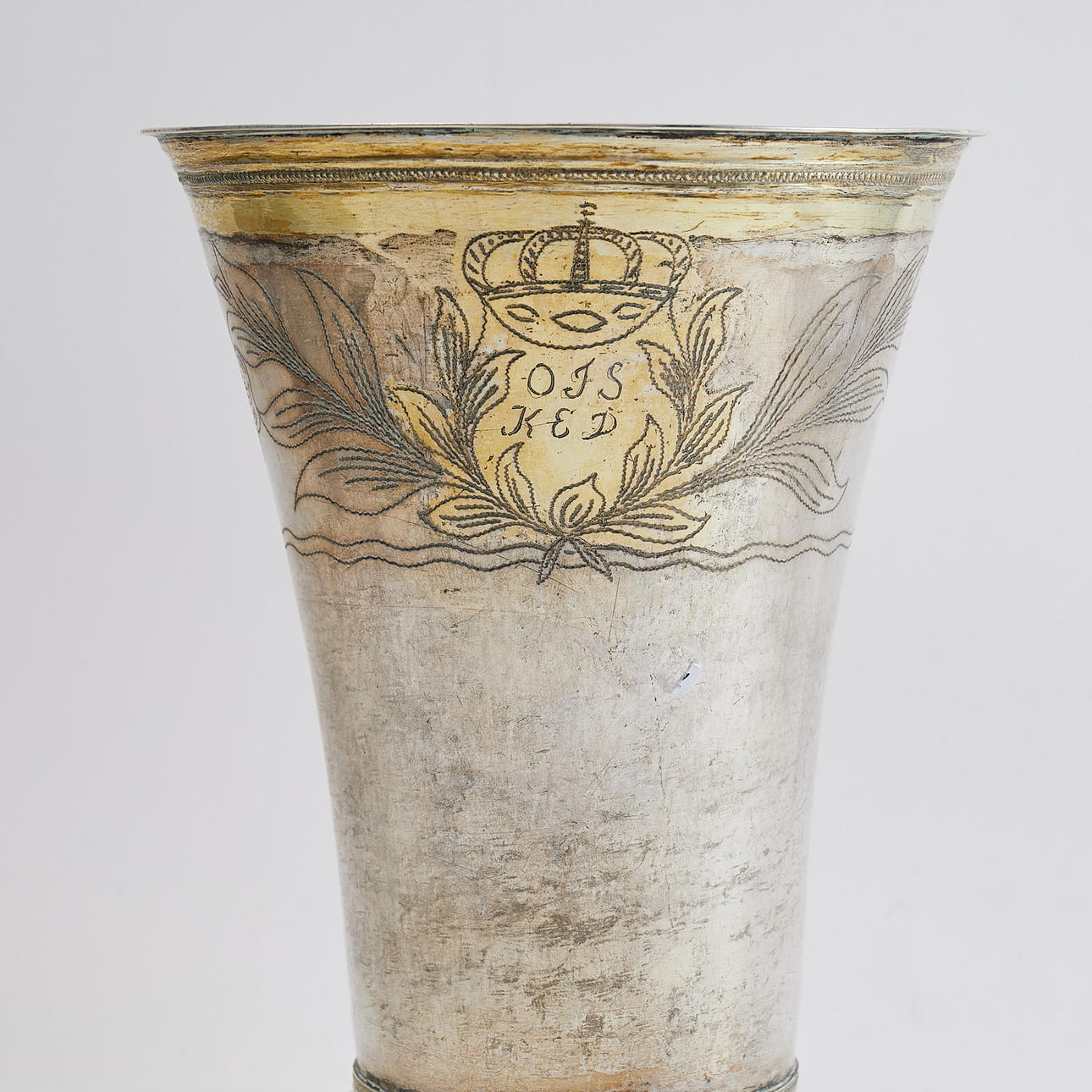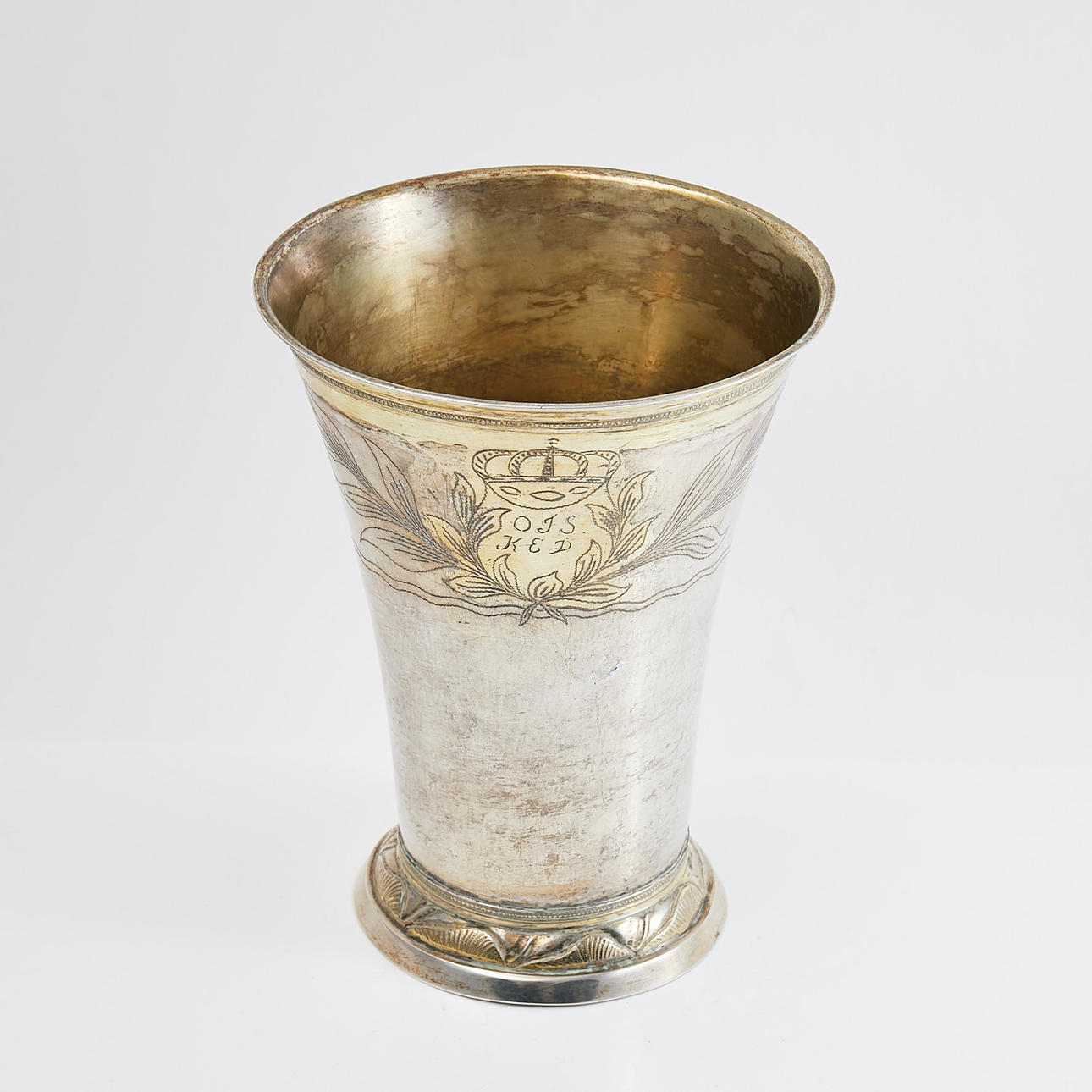 4549220. JOHAN HÖGSTEDT, KALMAR. BEAKER, 1798, decor with bay leaf and crowned monogram.