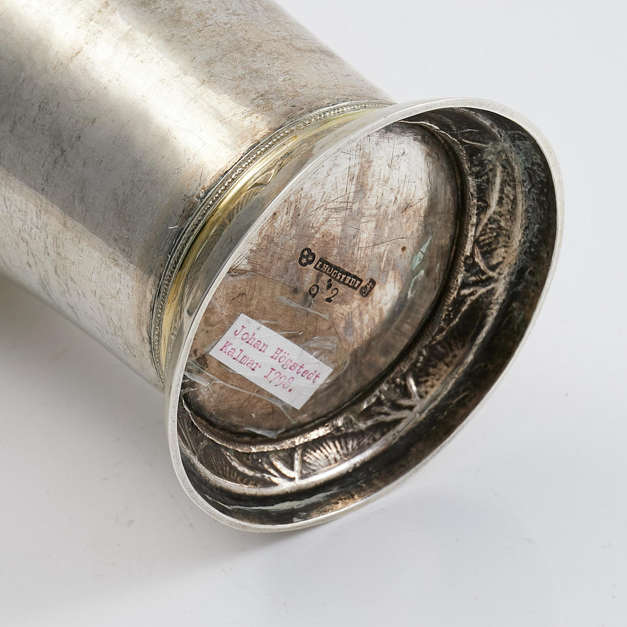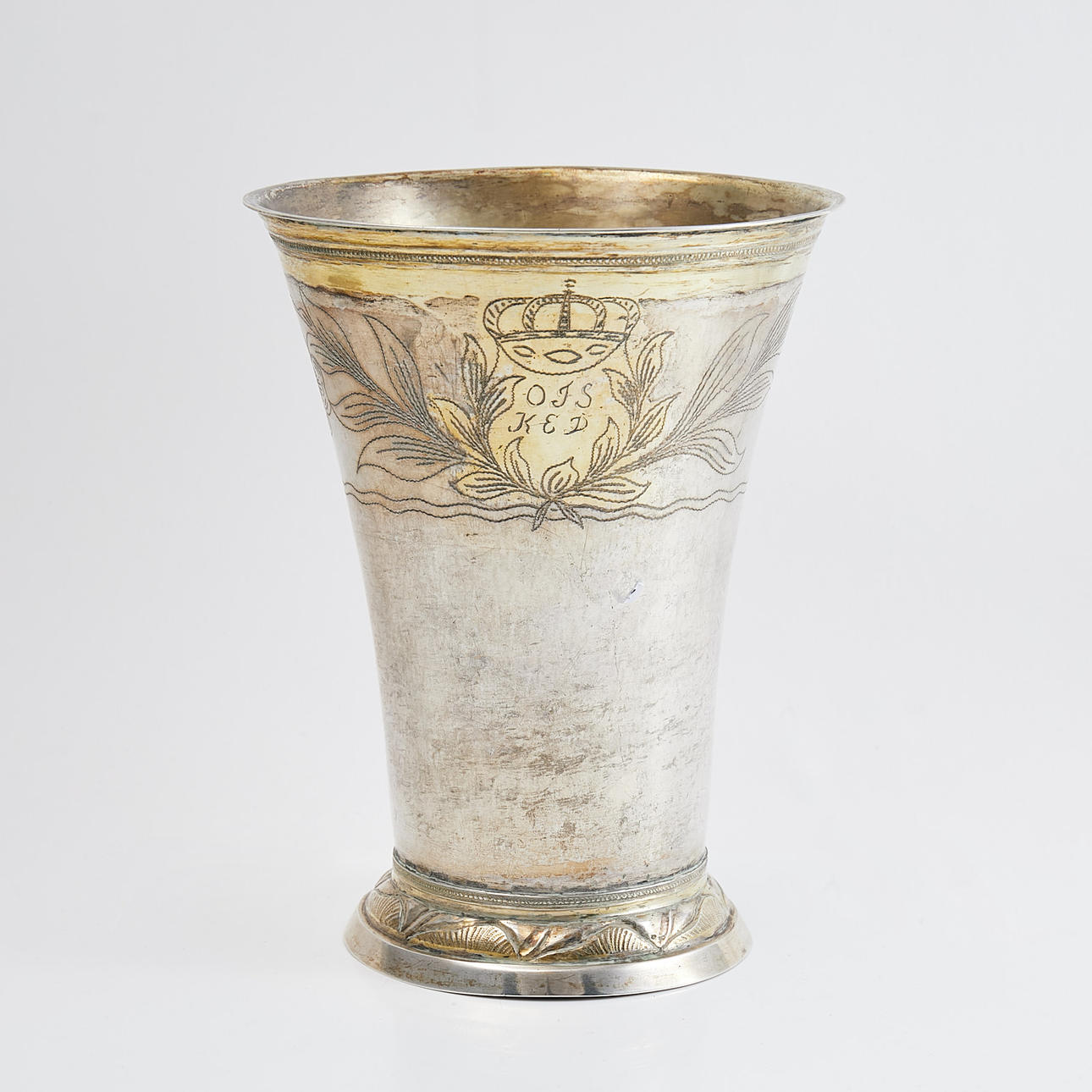 JOHAN HÖGSTEDT, KALMAR. BEAKER, 1798, decor with bay leaf and crowned monogram.