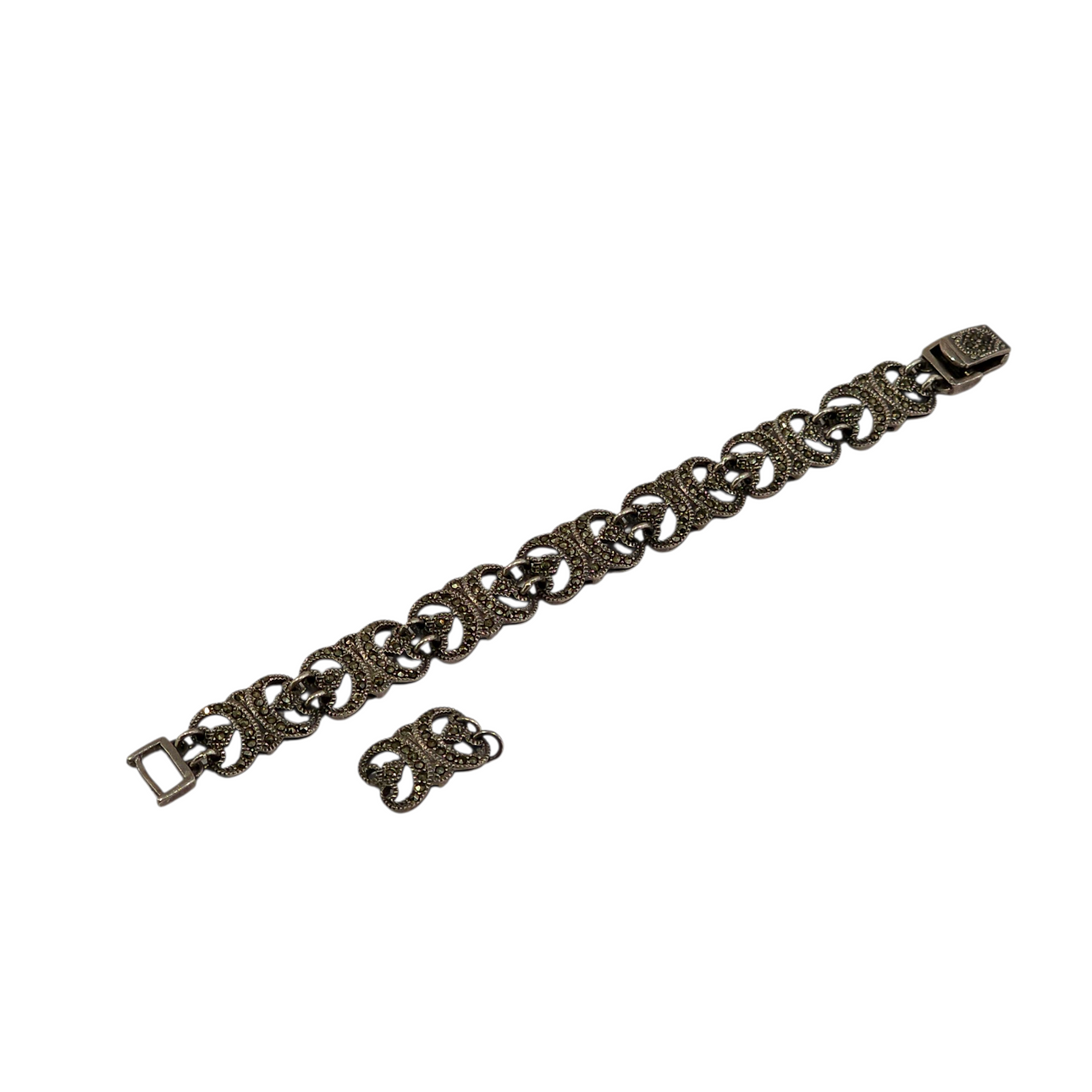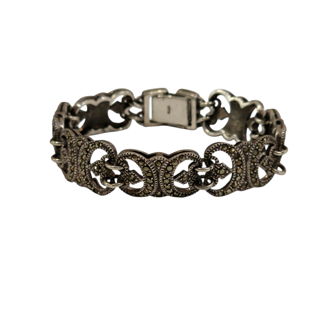 4549982. Semi-rigid marquise bracelet in openwork silver.