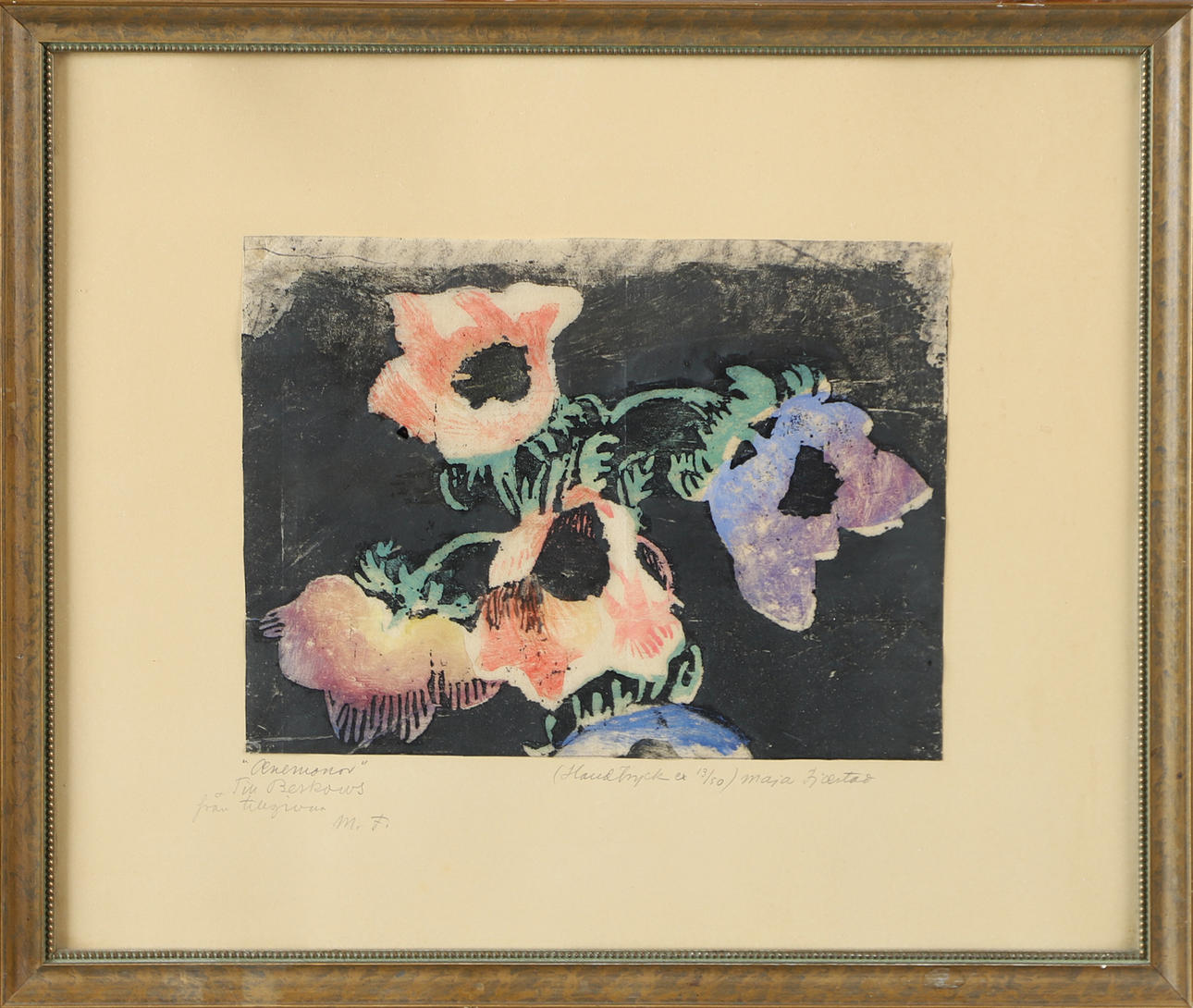MAJA FJAESTAD. “Anemones”, handprint, signed.