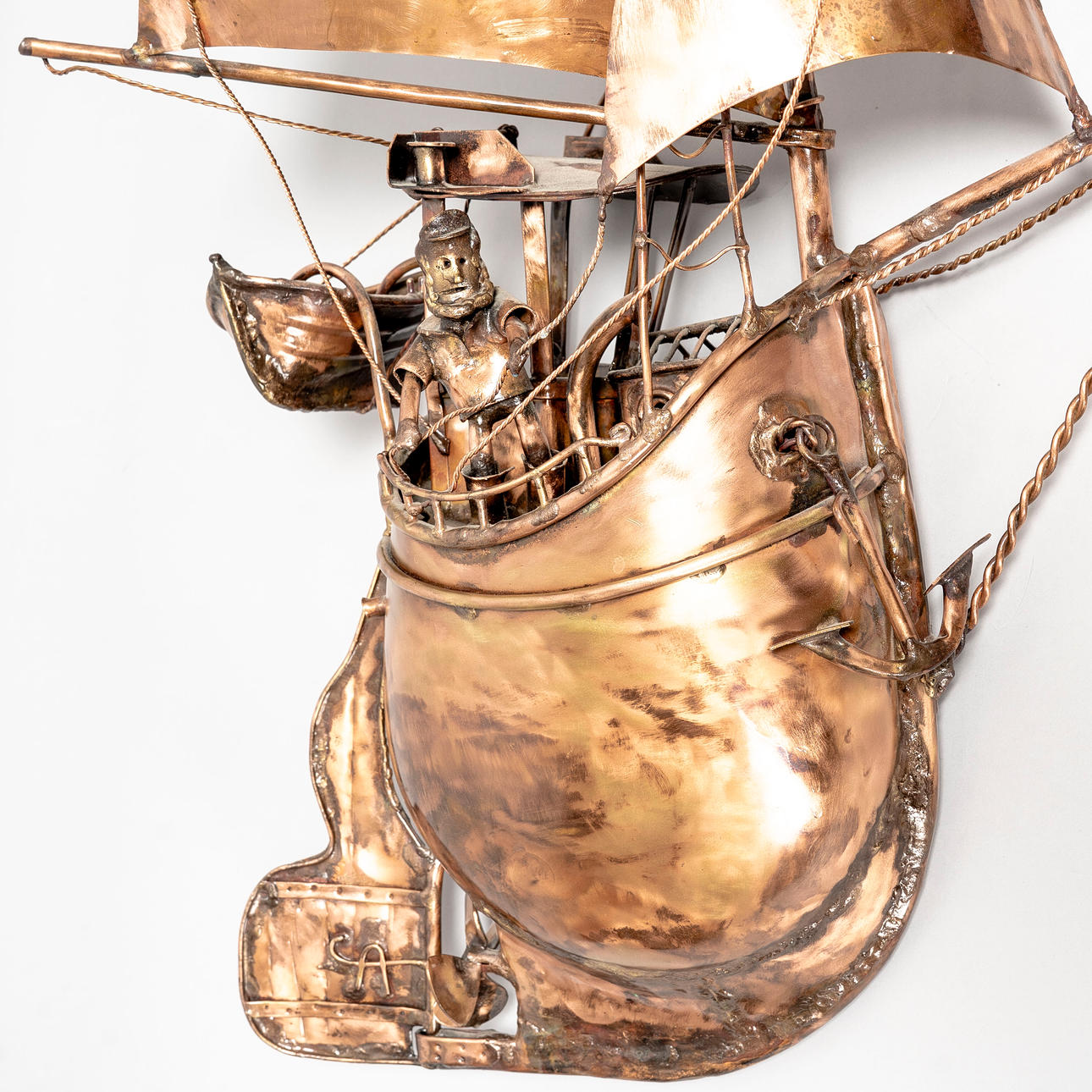4553284. CURT ANDERSSON (1931-2013). Wall sculpture, ship, copper, monogram signed.