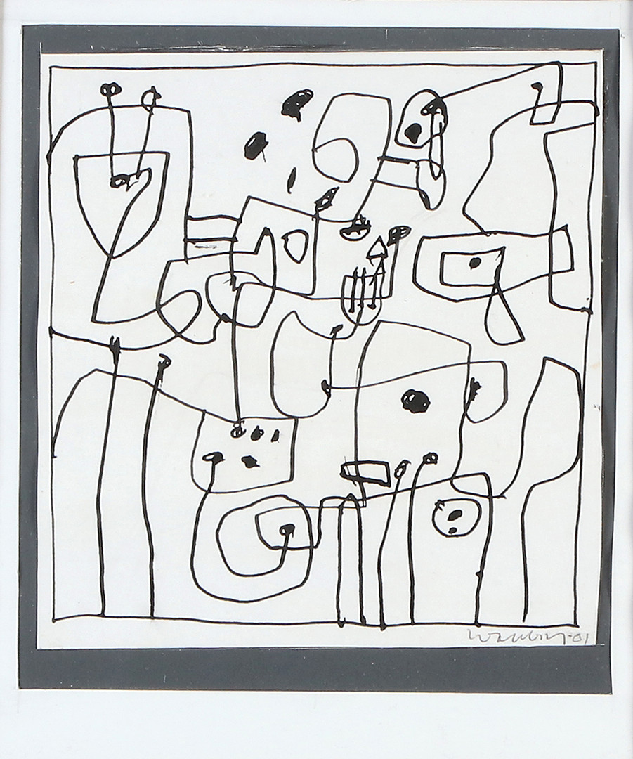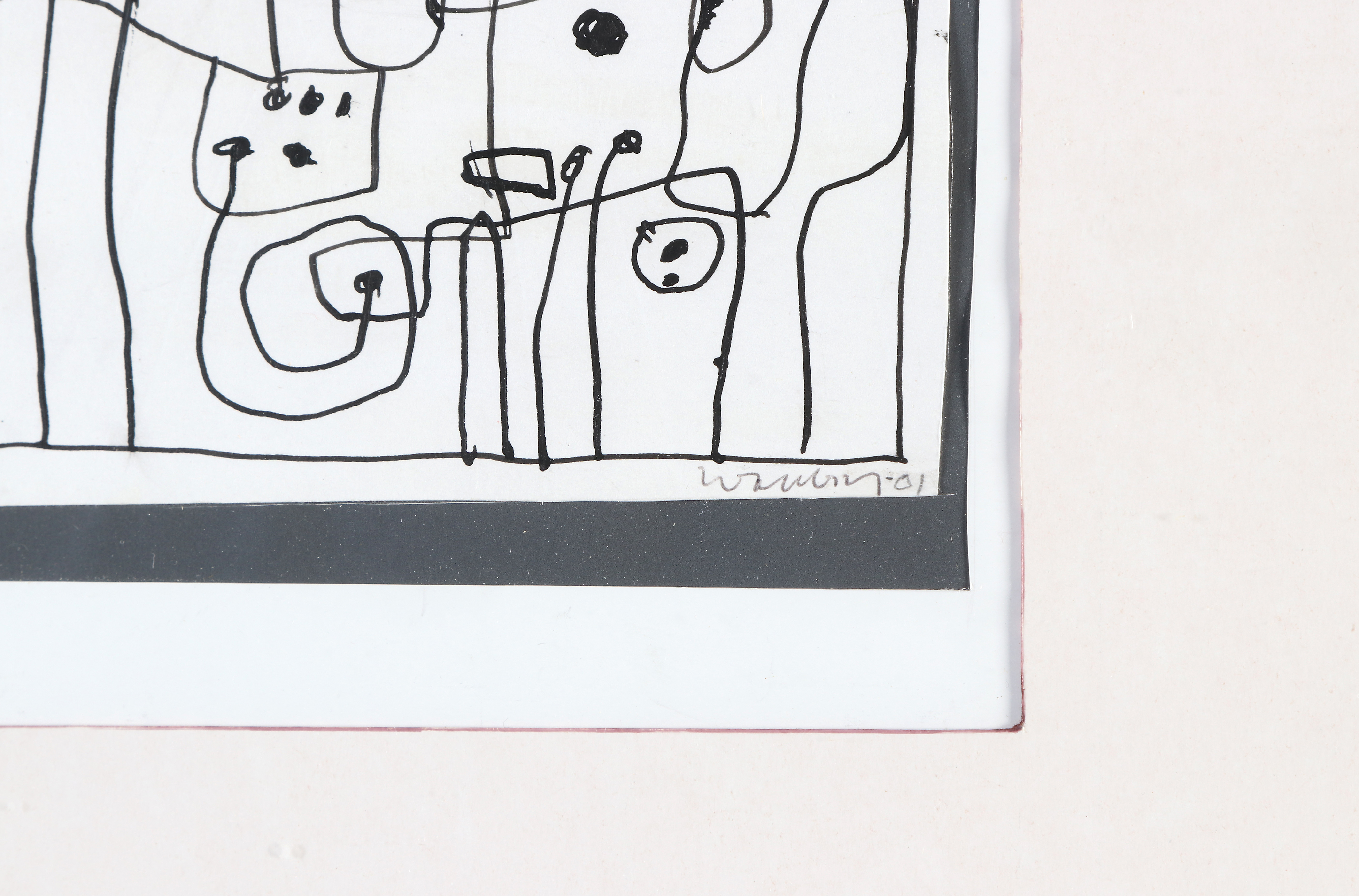 4553389. BENGT WALLBERG. FELT-TIP PEN DRAWING. Composition. Signed.