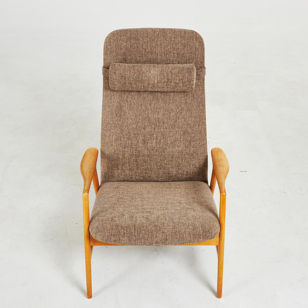 4554873. ALF SVENSSON. Armchair, from the Contour series, Dux, beech frame, solid upholstered frame with grey melange upholstery.