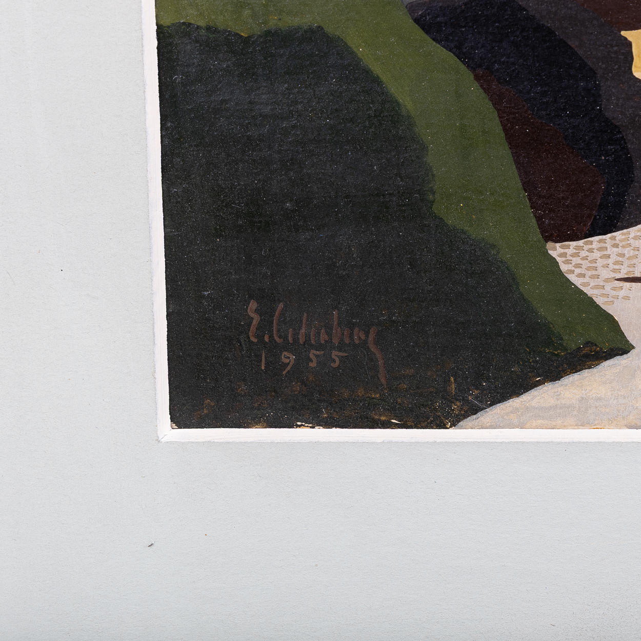 ERIC CEDERBERG. Oil on panel, composition with boathouses, signed E Cederberg and dated 1955.