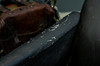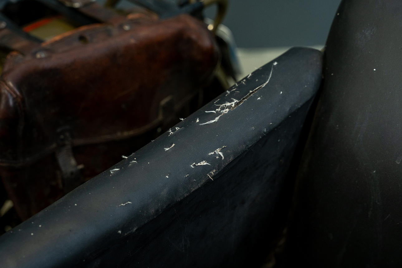 Upholstery in sidecar with damage.