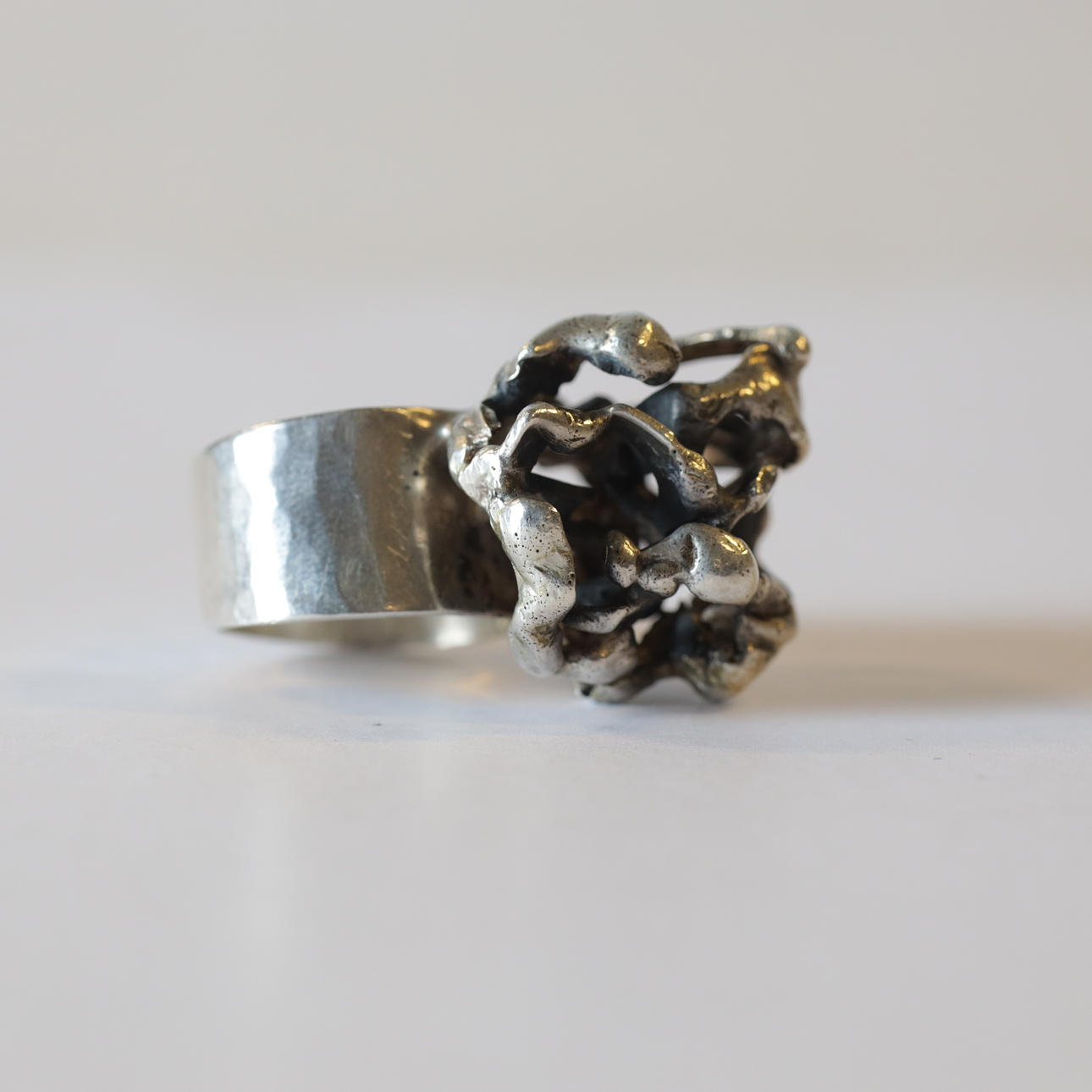 A silver organic shape ring, 1973. Total weight 27,76 grams.