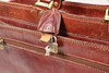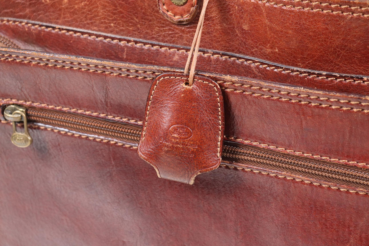 Several compartments with zippers. Length 45 cm, width 20 cm, height 32 cm.