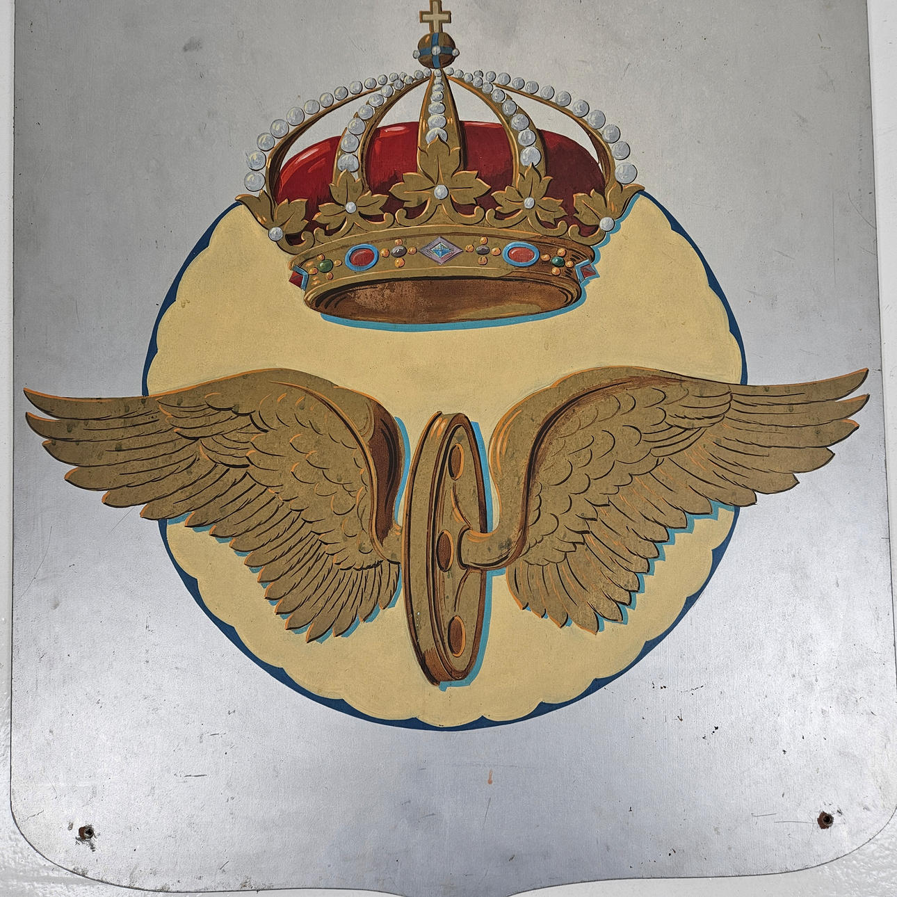 A 20th-century SJ Masonite sign, Winged Wheels.
