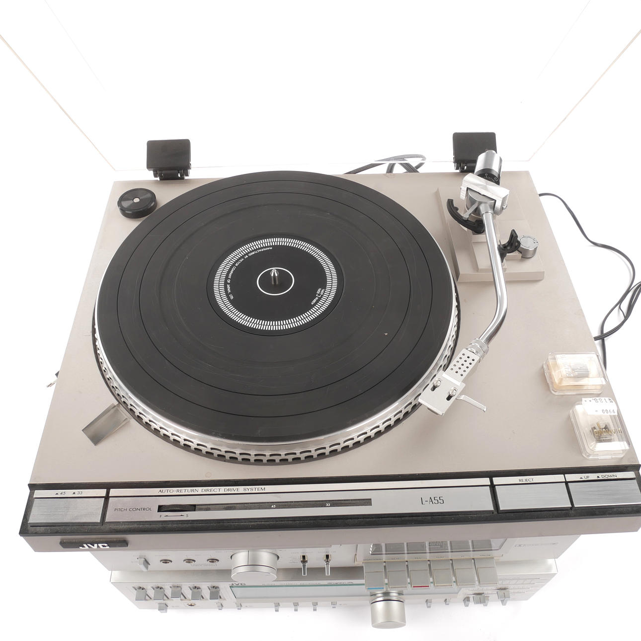 4563875. STEREO, 3-piece, receiver, vinyl player, cassette deck, JVC, 1970/80s.