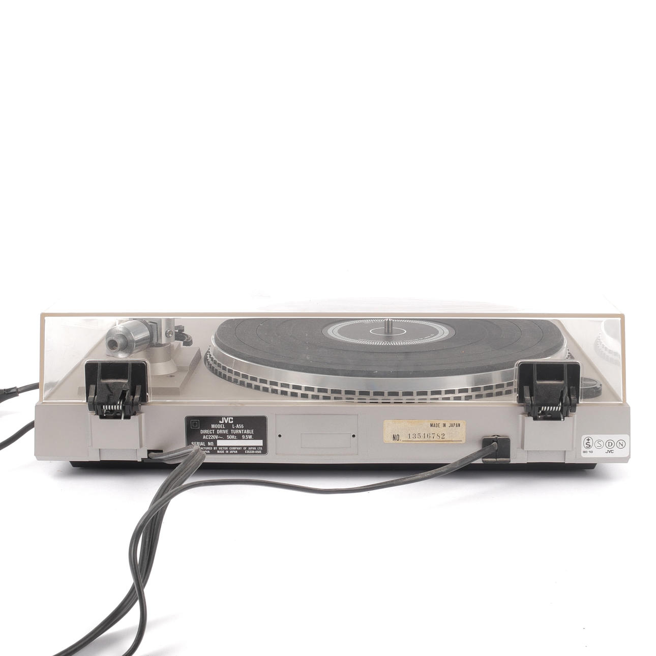 Condition of use. Power is available on all parts. Turntable spins. No functional test done. Turntable covers do not stay in the folded position.