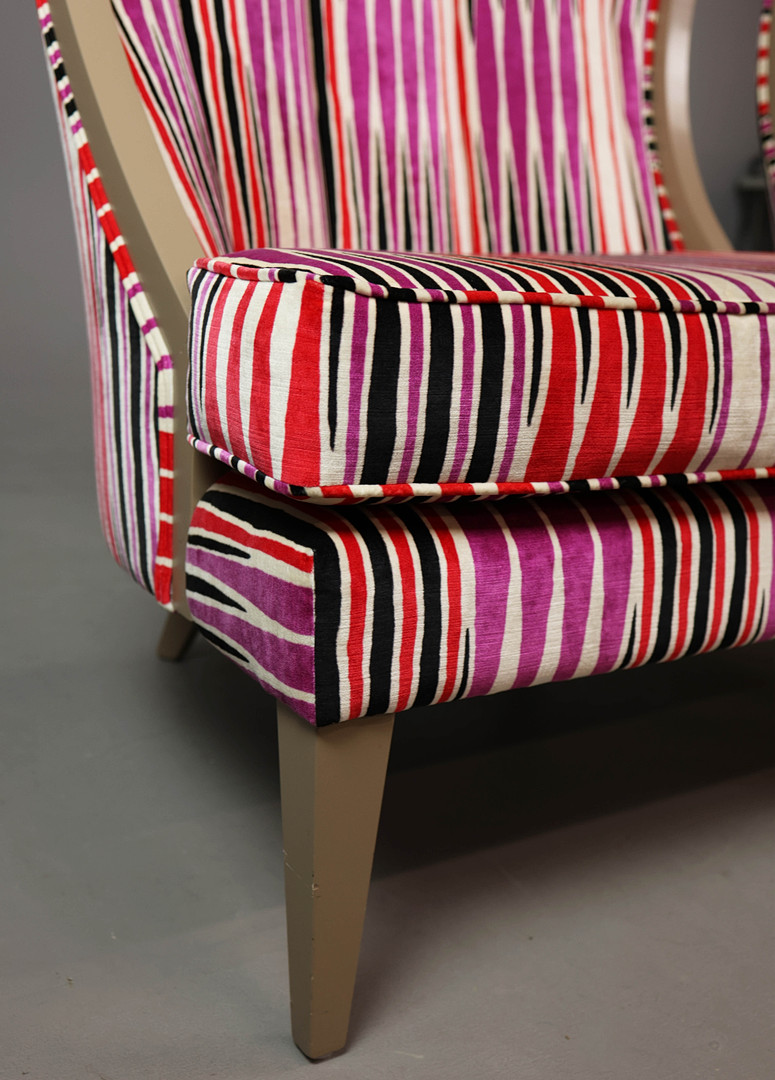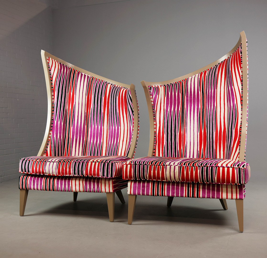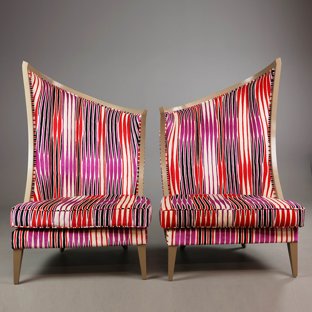 840. 4564147. SET OF TWO CHRISTOPHER GUY STYLE "COURBURE" HIGH BACK LOUNGE CHAIRS.