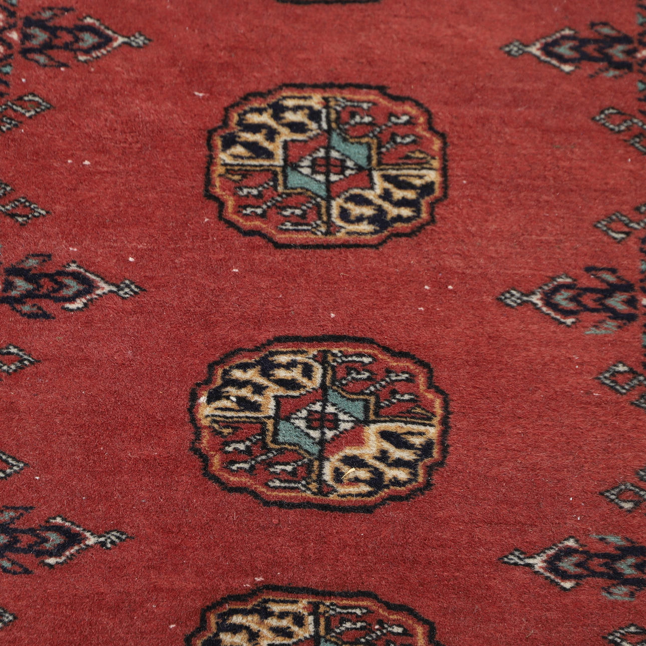 Medallions on red background.