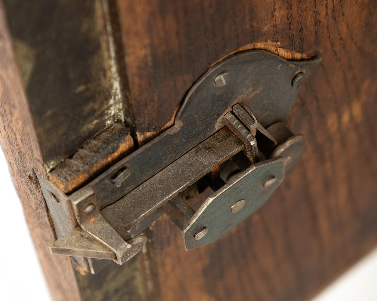 Old woodworm damage, crack in the left figure, usual signs of wear, partial restorations (nose of the right figure) and additions. .