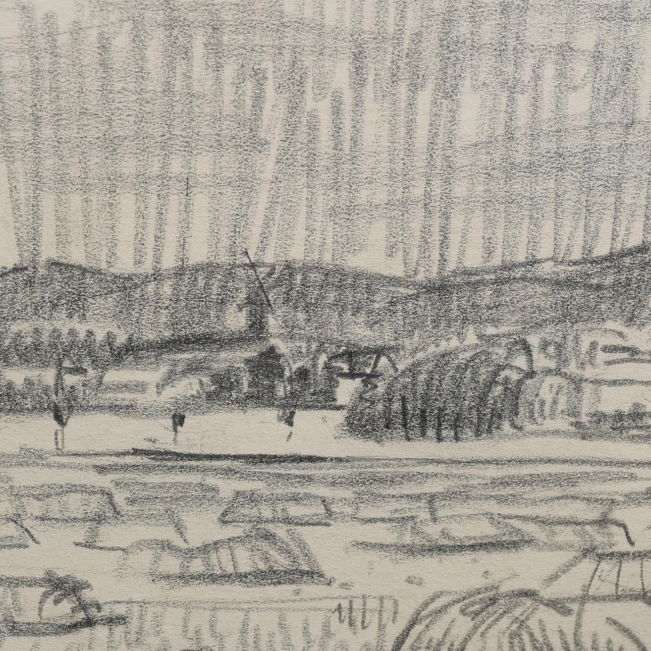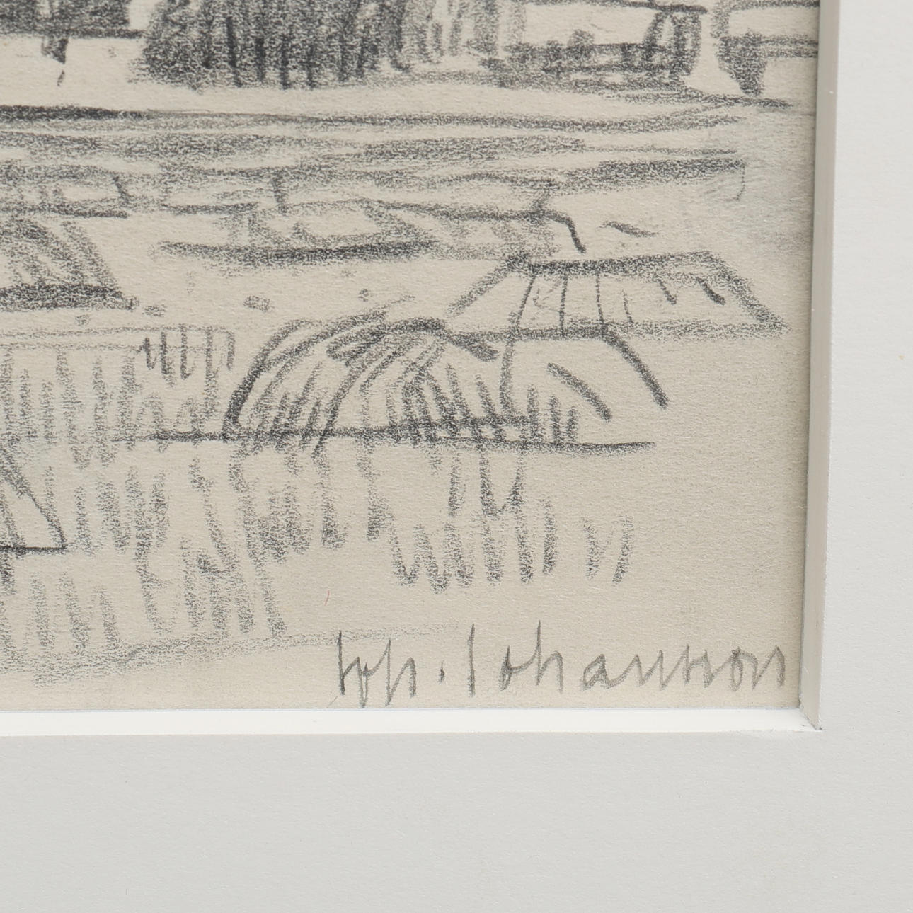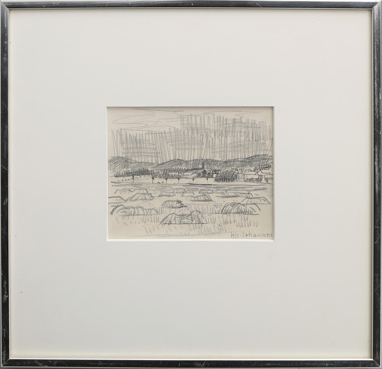 4572041. JOHAN JOHANSSON. GRAPHITE ON PAPER, LANDSCAPE STUDY, SIGNED.