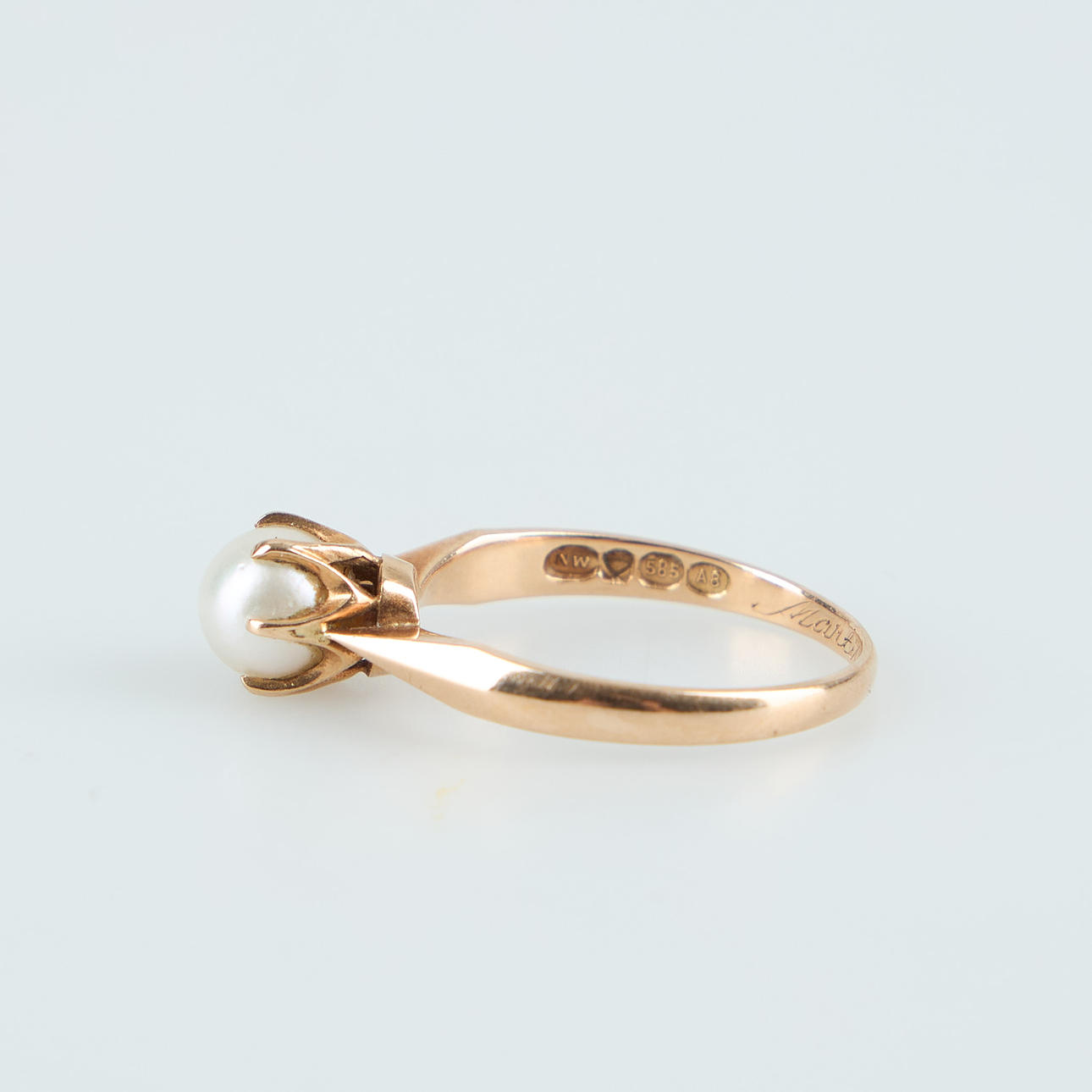 4574518. RING, 14K gold, cultured pearl, Westerback, Helsinki 1978.