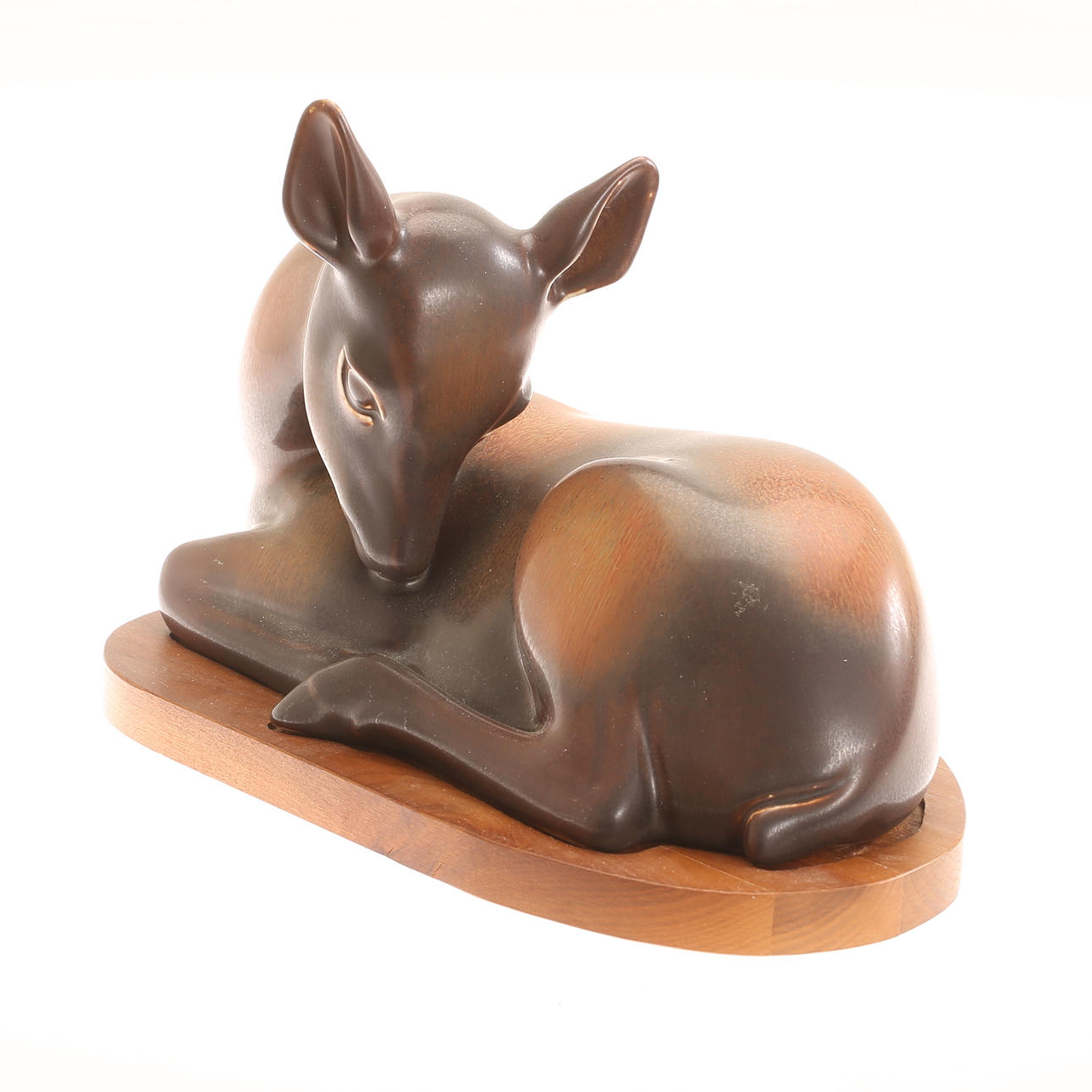 4578408. GUNNAR NYLUND. Figurine, stoneware, deer, signed, Rörstrand.