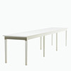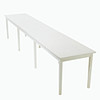 Covered in white canvas with spiked edge, eight pieces of removable legs. Length 410, width 75, height 79,5 cm.