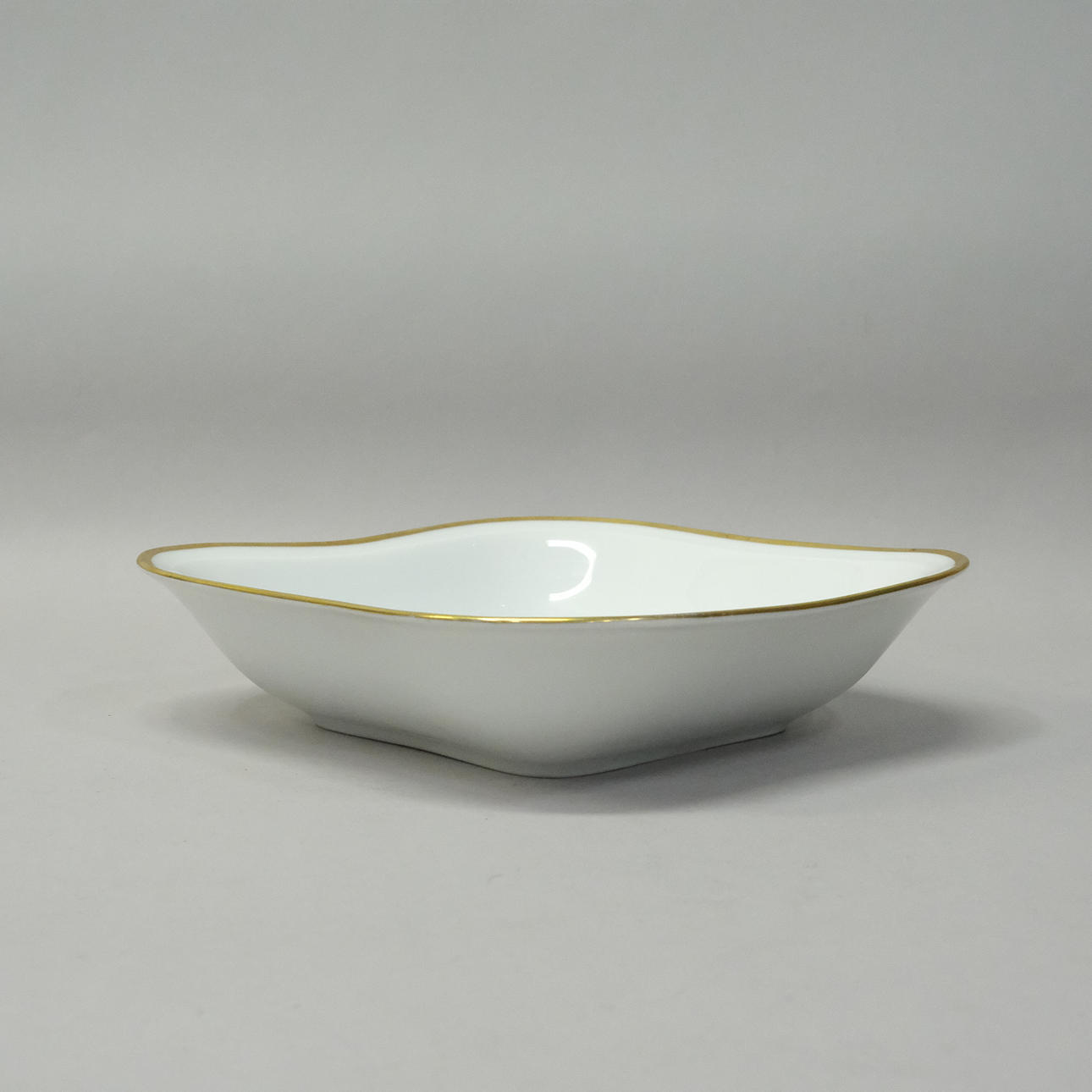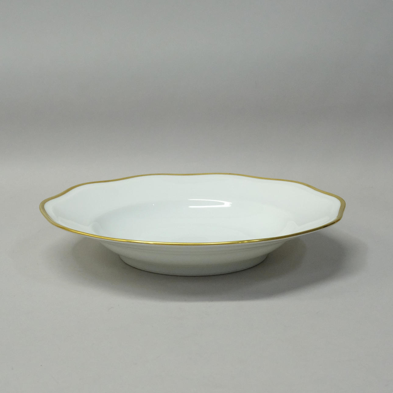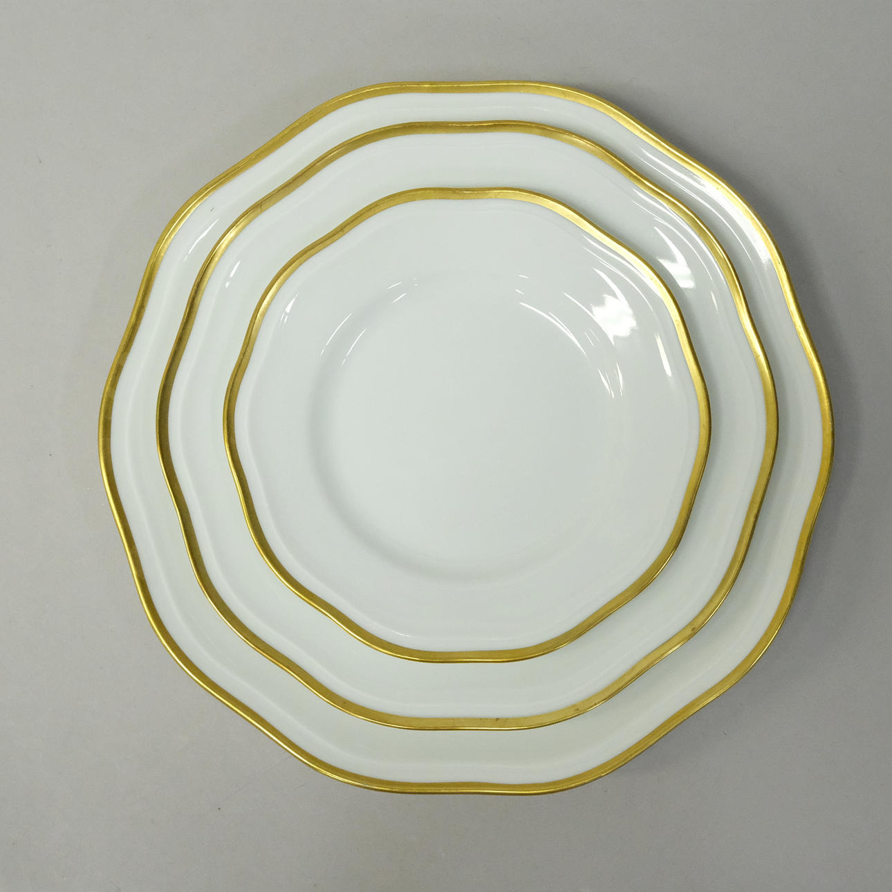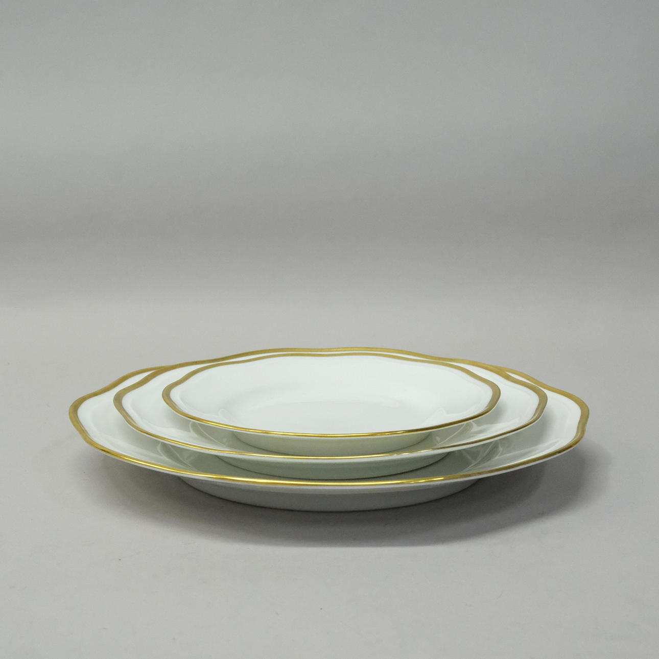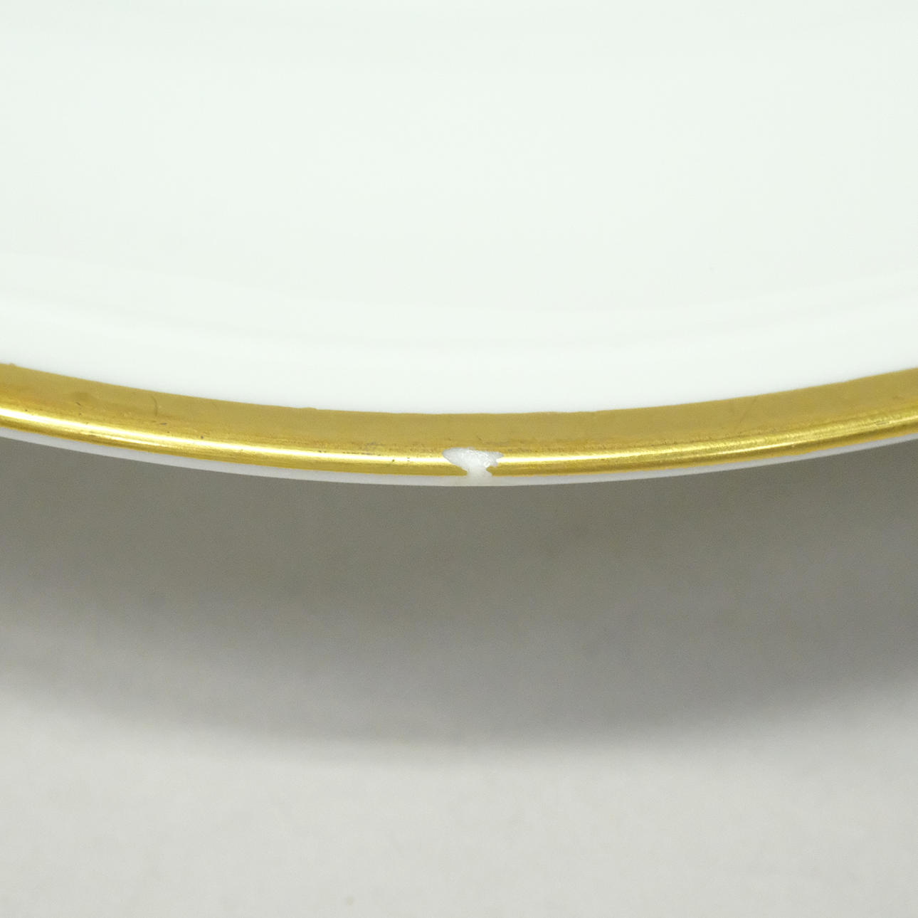Someone with less gilding wear. A dining plate with a small edge notch.