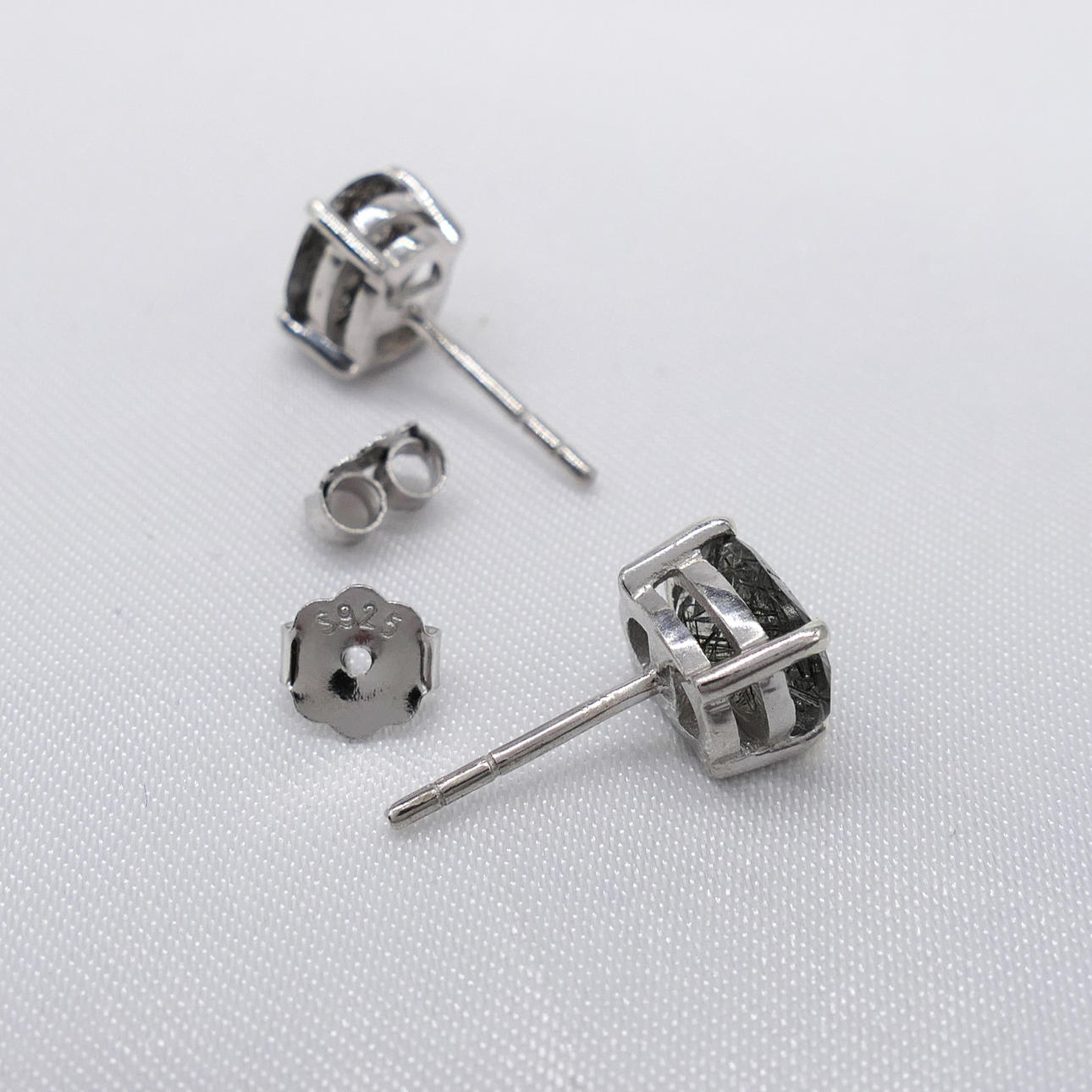 Ear studs: 925 sterling silver; claw-set; butterfly backs; weight 1.6 grams.