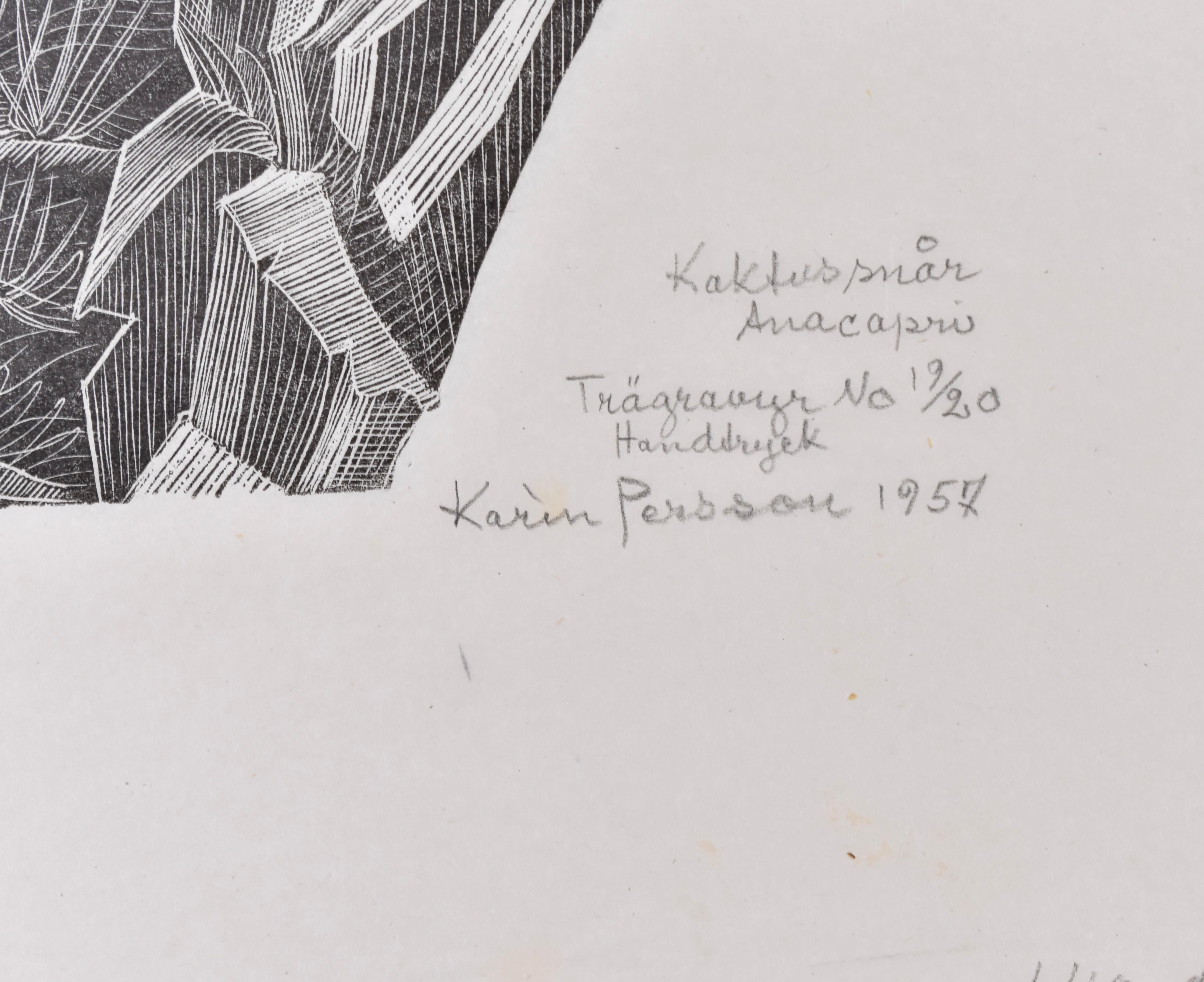 4583989. KARIN PERSSON. wood engraving, “Cactus thicket Anacapri”.