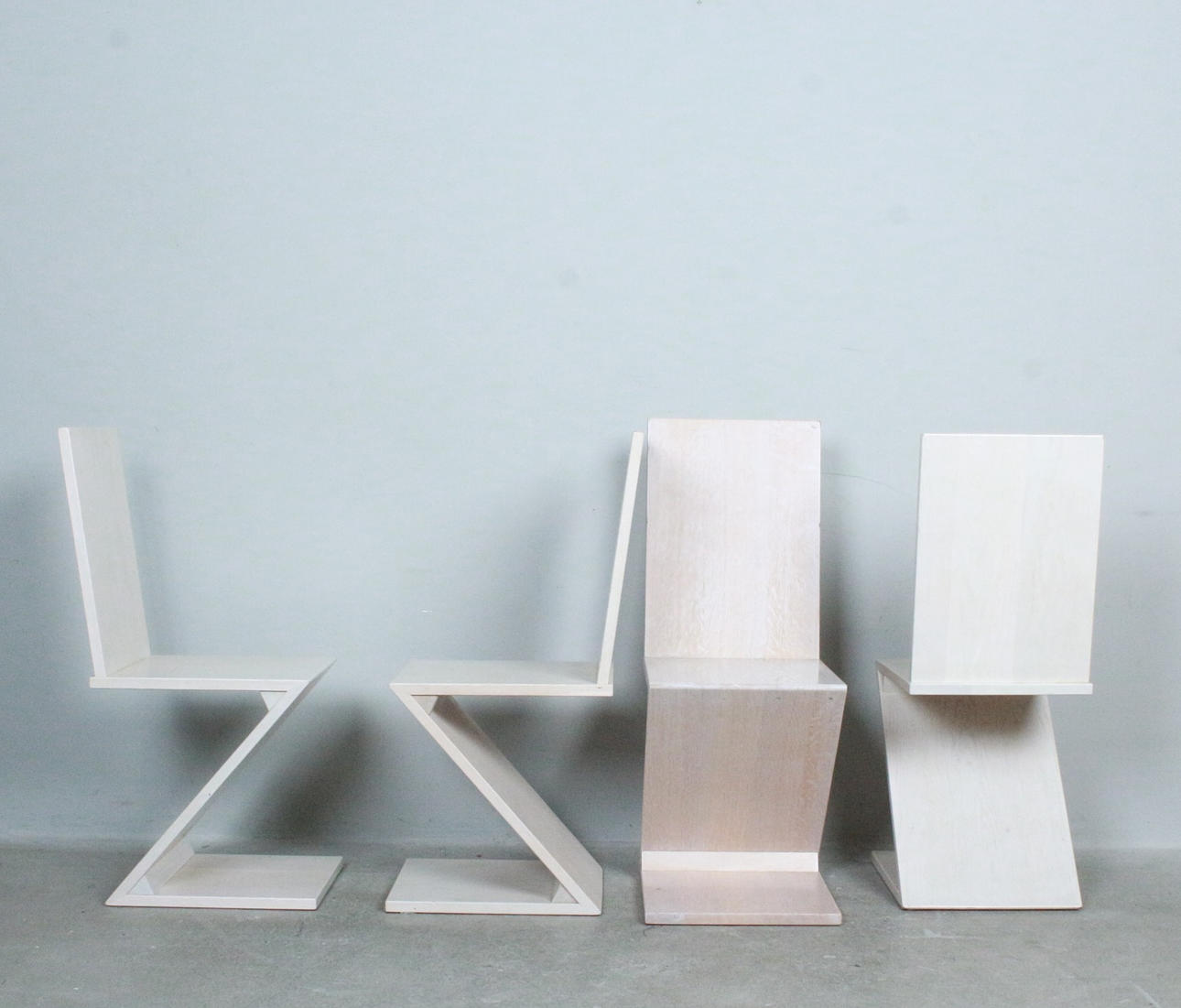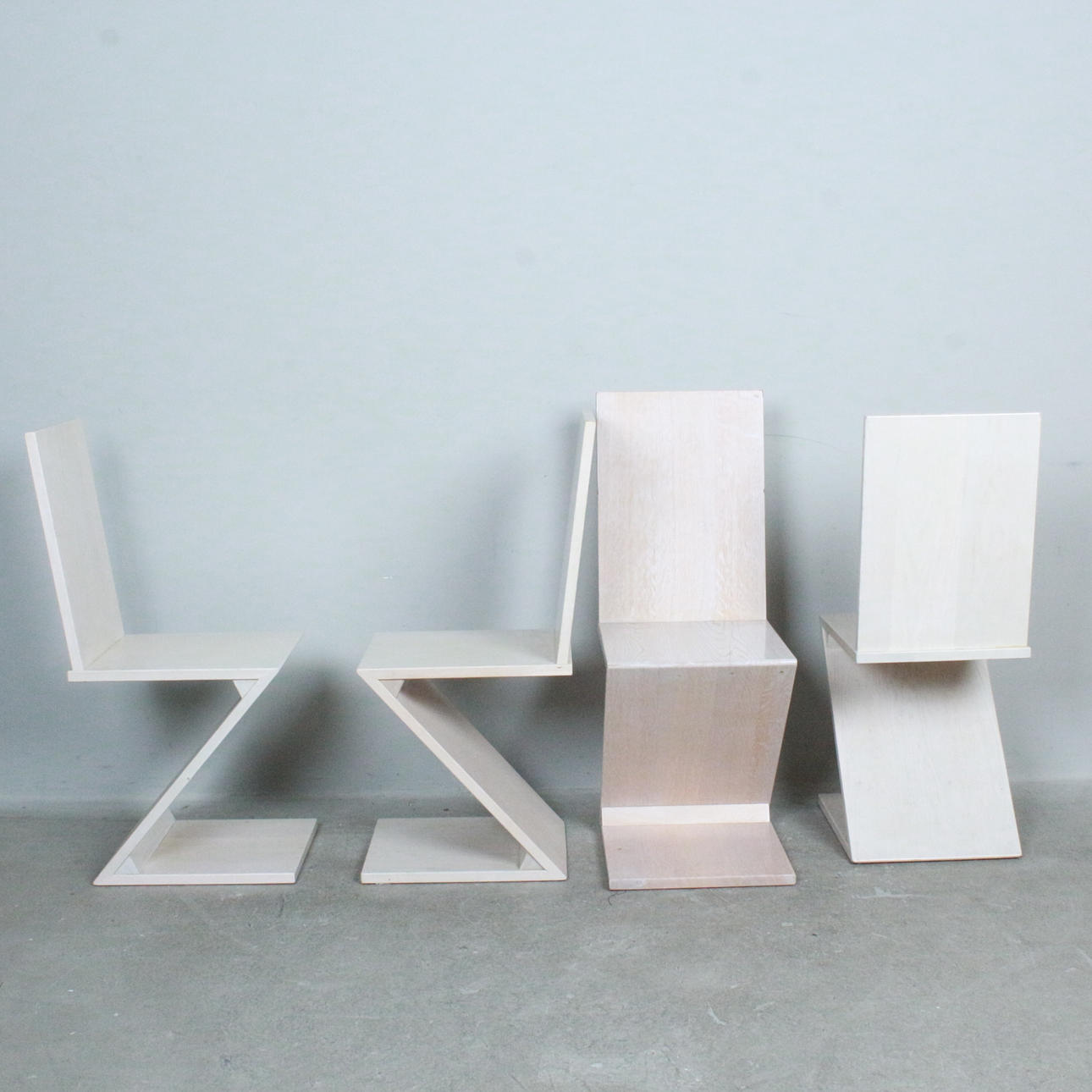 Four zig zag style dining room chairs.