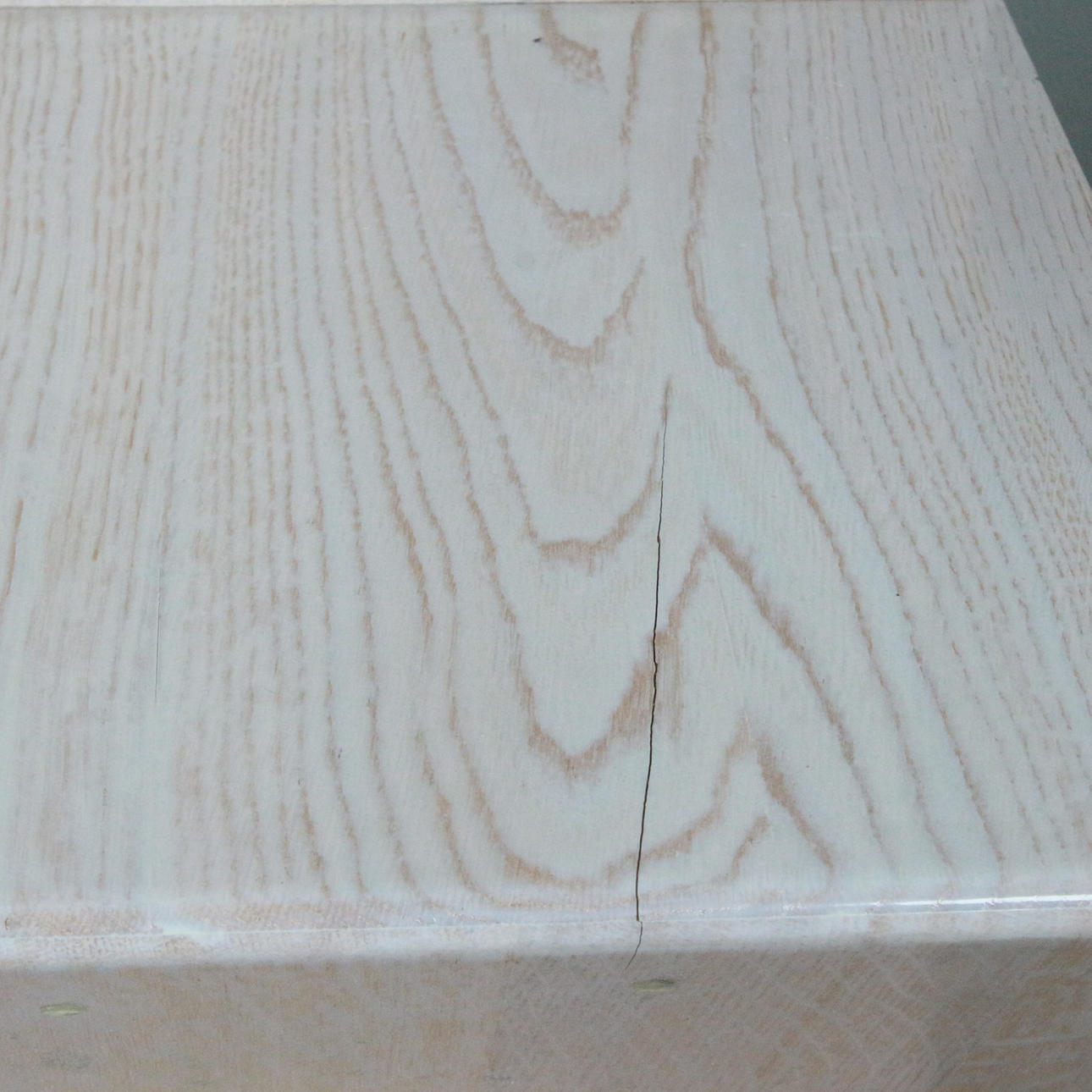 Age-appropriate condition differences in color. Stretch cracks on a chair and chipped. Stained. yellowed.