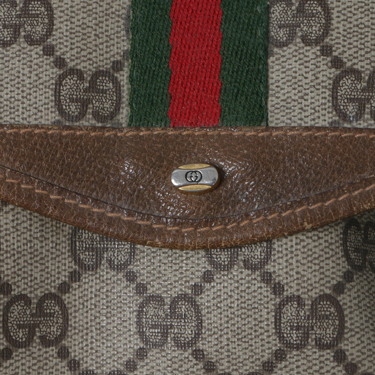 With signature beige and brown GG monogram canvas, trimmed with leather and with green and red stripe to the flap. Gucci leather embossed label to the inside and paper label with stamped serial number 63101 & 262454C