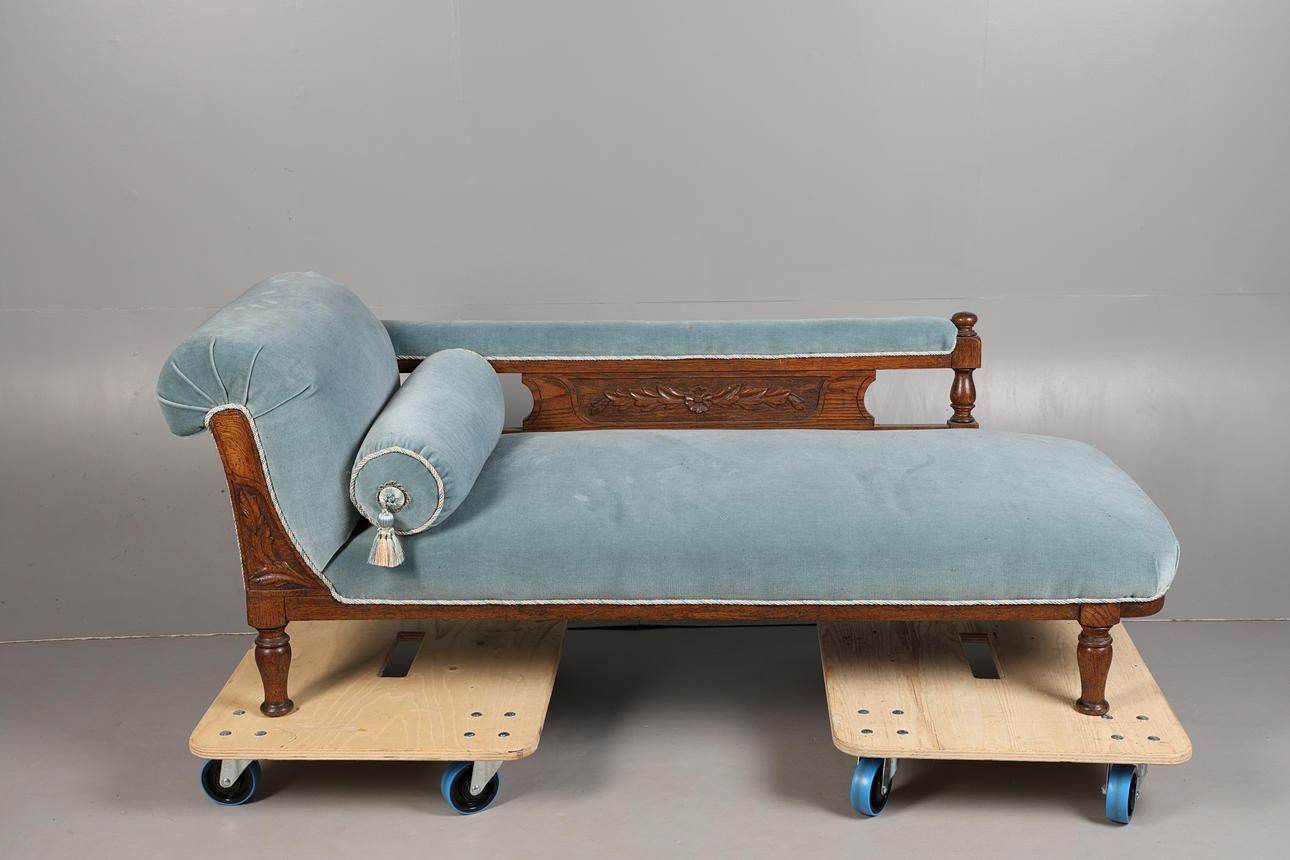 4593975. A LATE VICTORIAN OAK CHAISE LOUNGE.