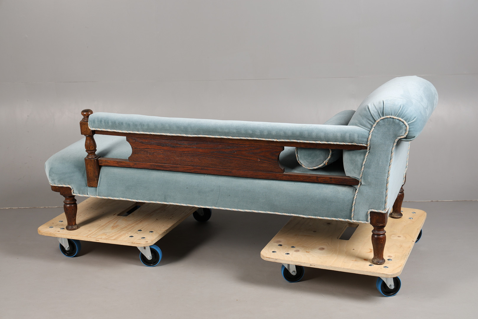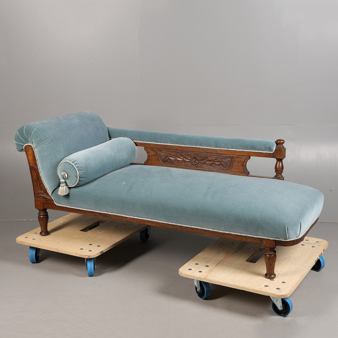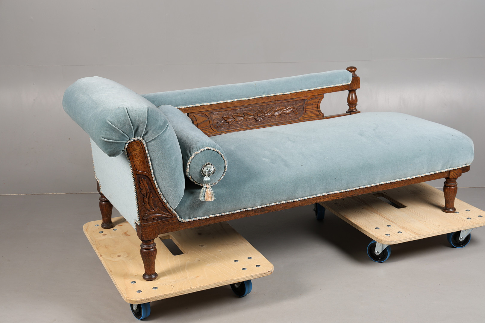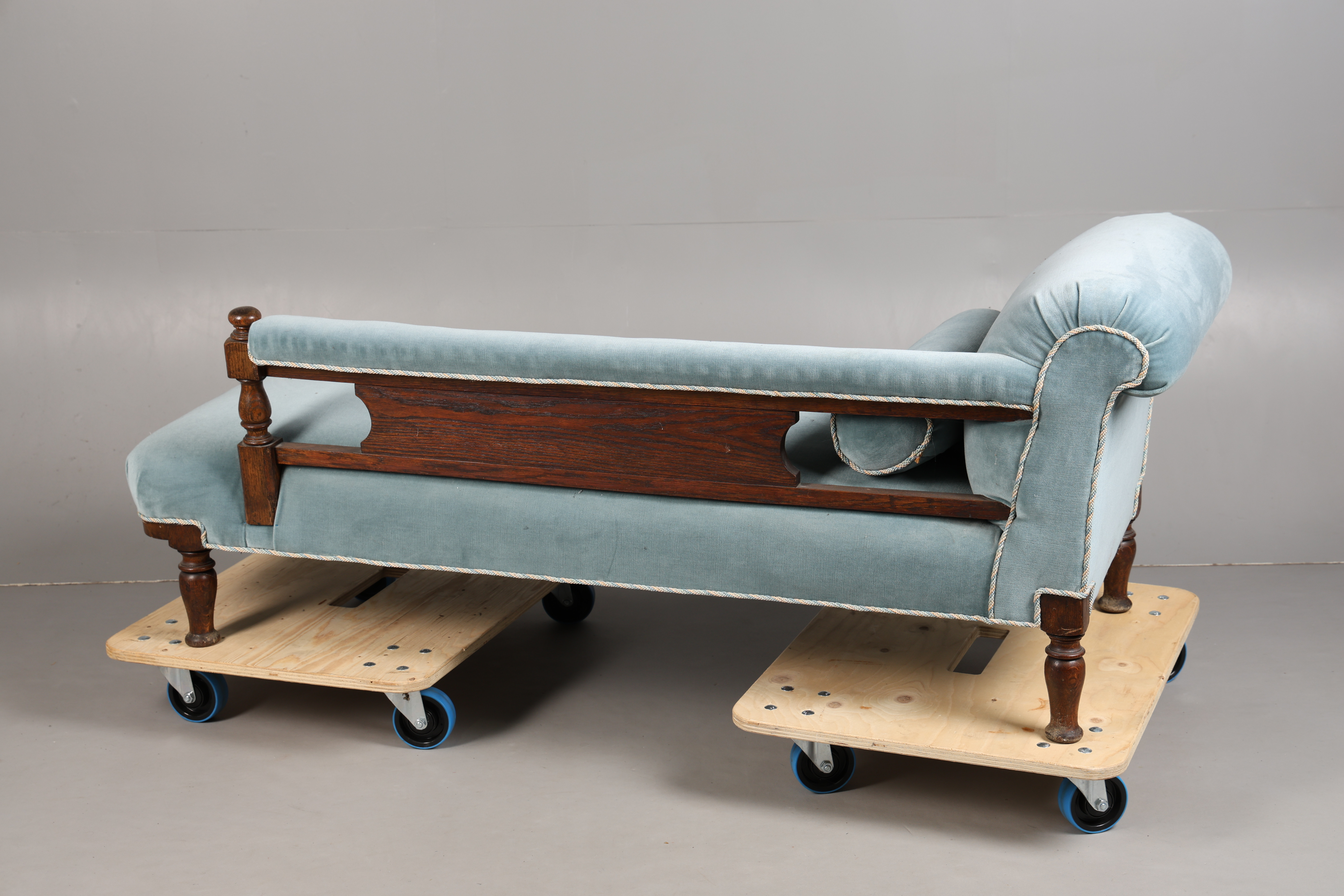 4593975. A LATE VICTORIAN OAK CHAISE LOUNGE.