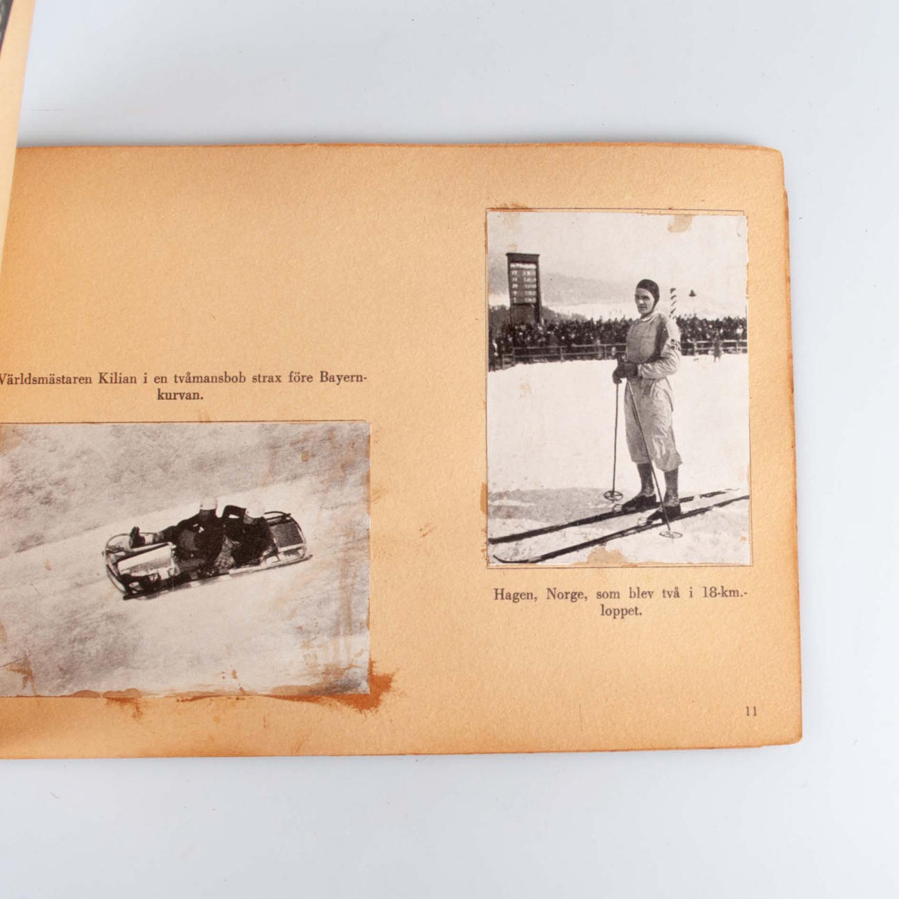 Illustrated with black and white photographs from the Winter Olympic Games in Garmisch-Partenkirchen, including pictures of Erik Larsson, Swedish gold medalist in the 18 km race, and Prince Gustav Adolf at the award ceremony.