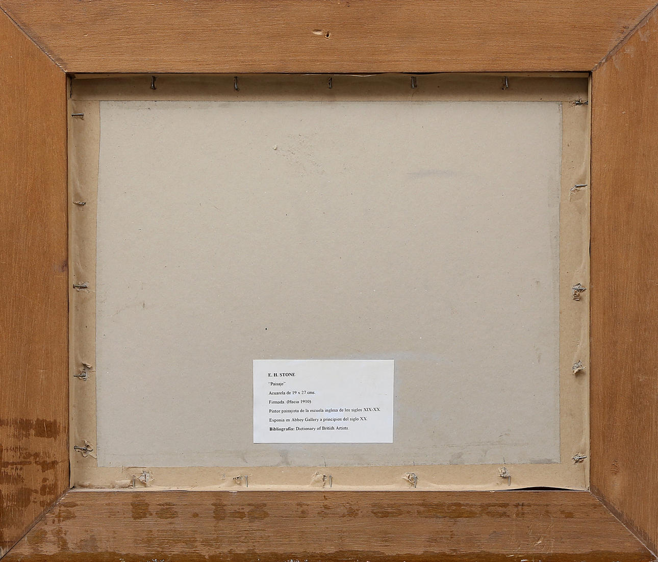 It has not been examined out of the frame. Varnished wood frame, with acrylic glass.