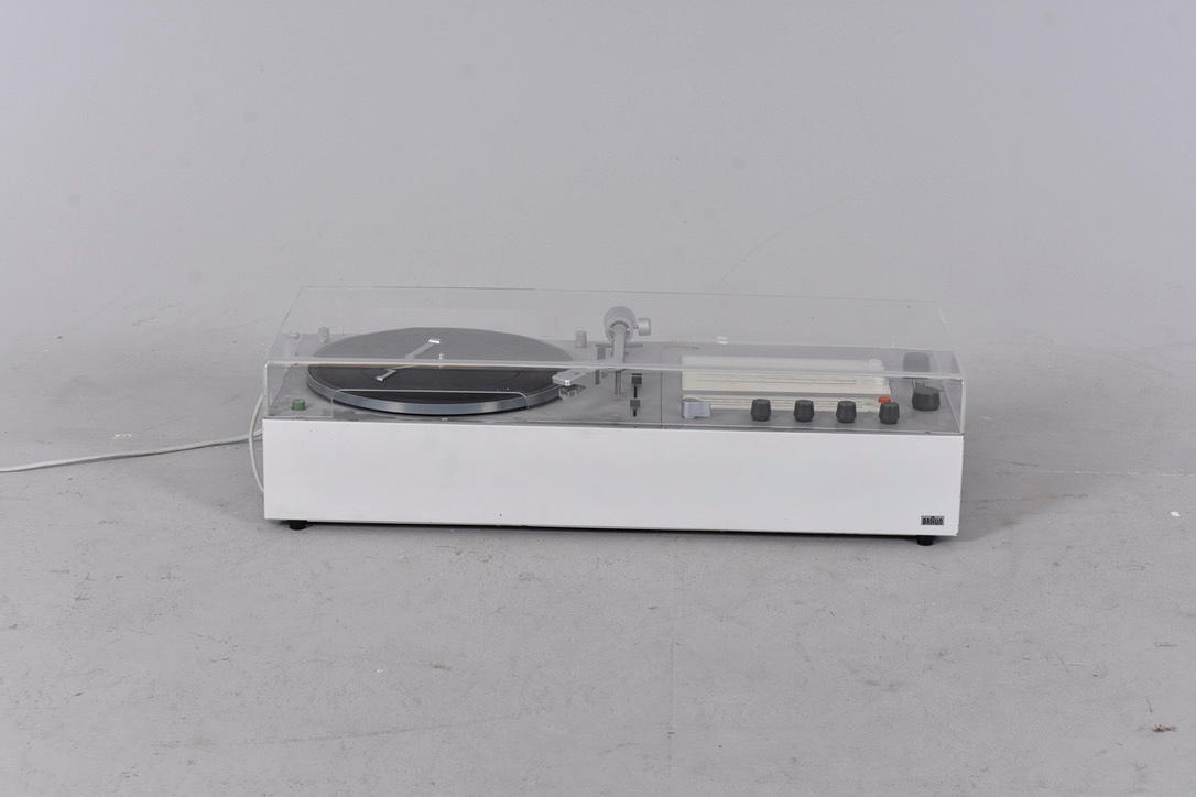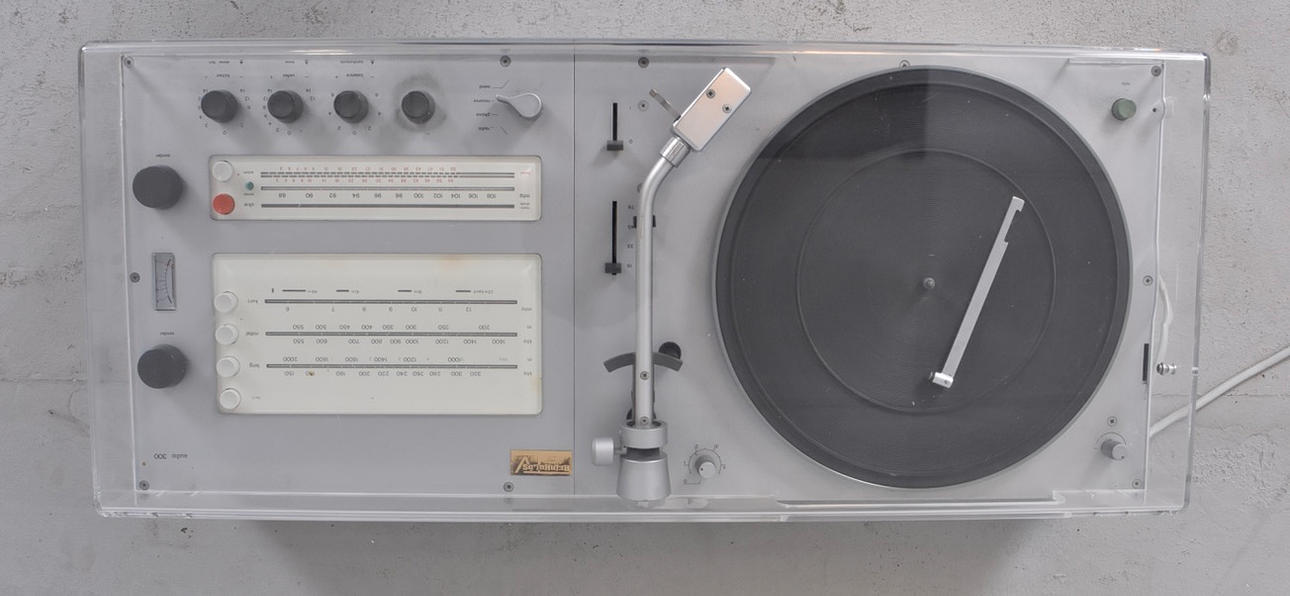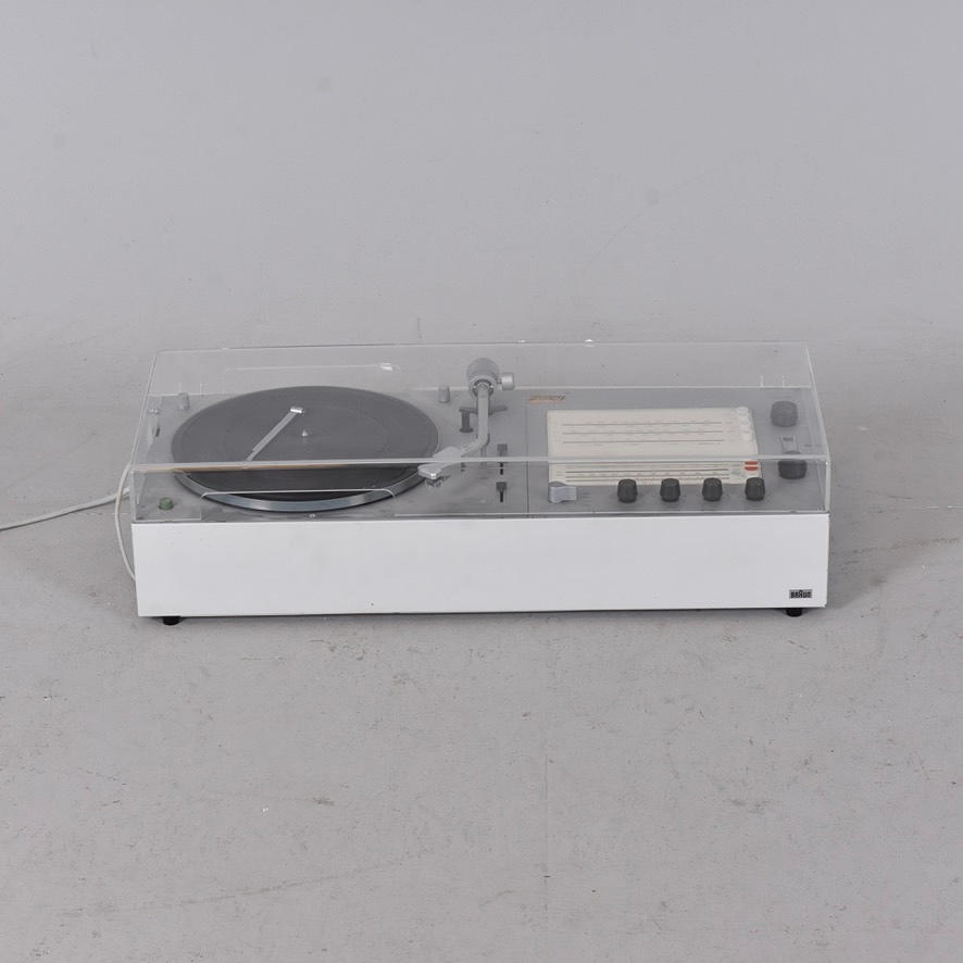 Compact system consisting of a turntable, radio receiver and amplifier.