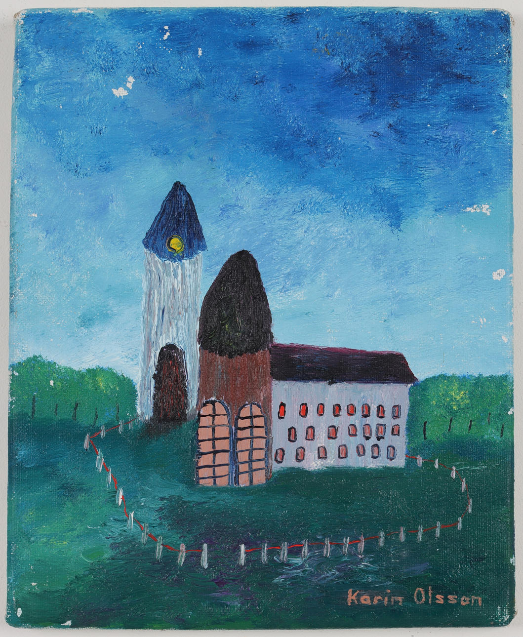 KARIN OLSSON. Landscape with buildings, oil on canvas, signed.