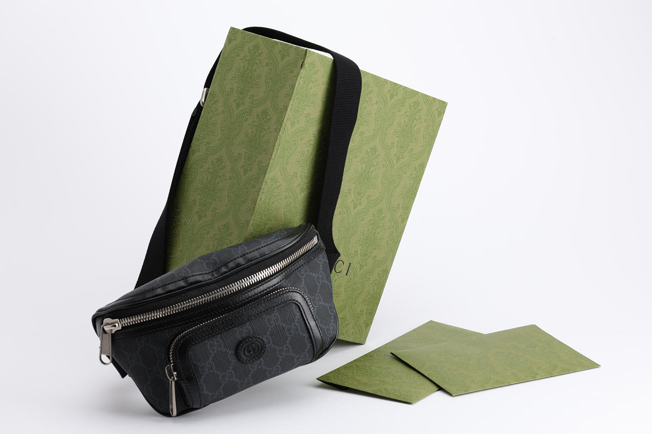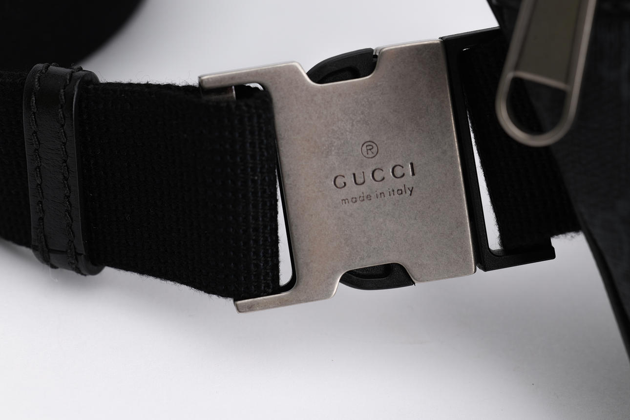 Adjustable textile belt, 3 compartments with zipper, 23x14xca 5 cm. Tagged Gucci, made in Italy. Numbered.