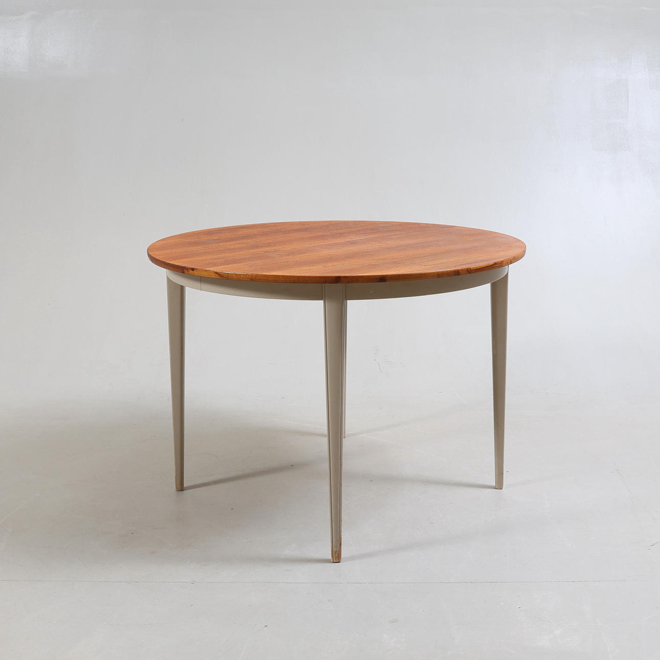 DINING TABLE, round, teak, with 2 inserts, 1950/60s.