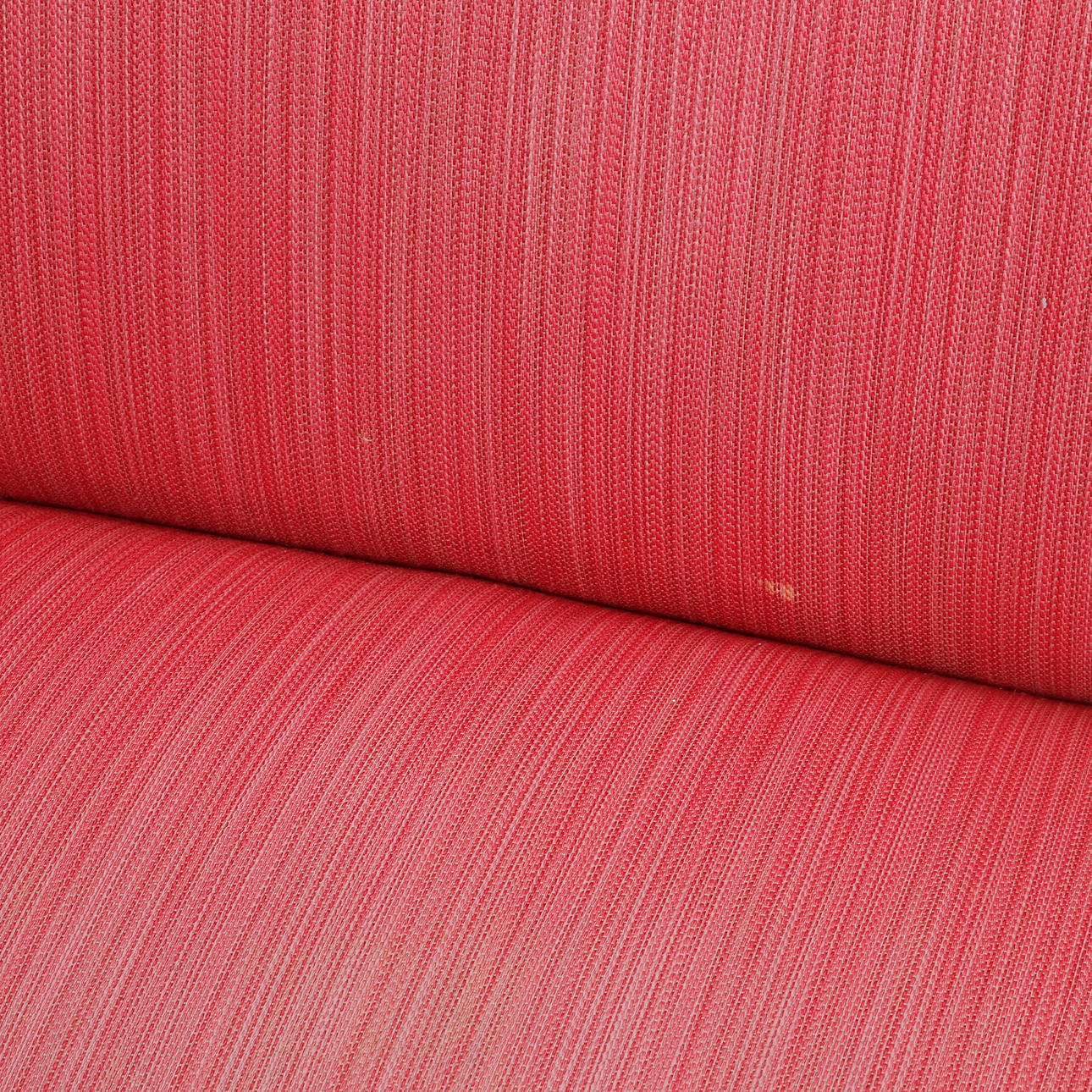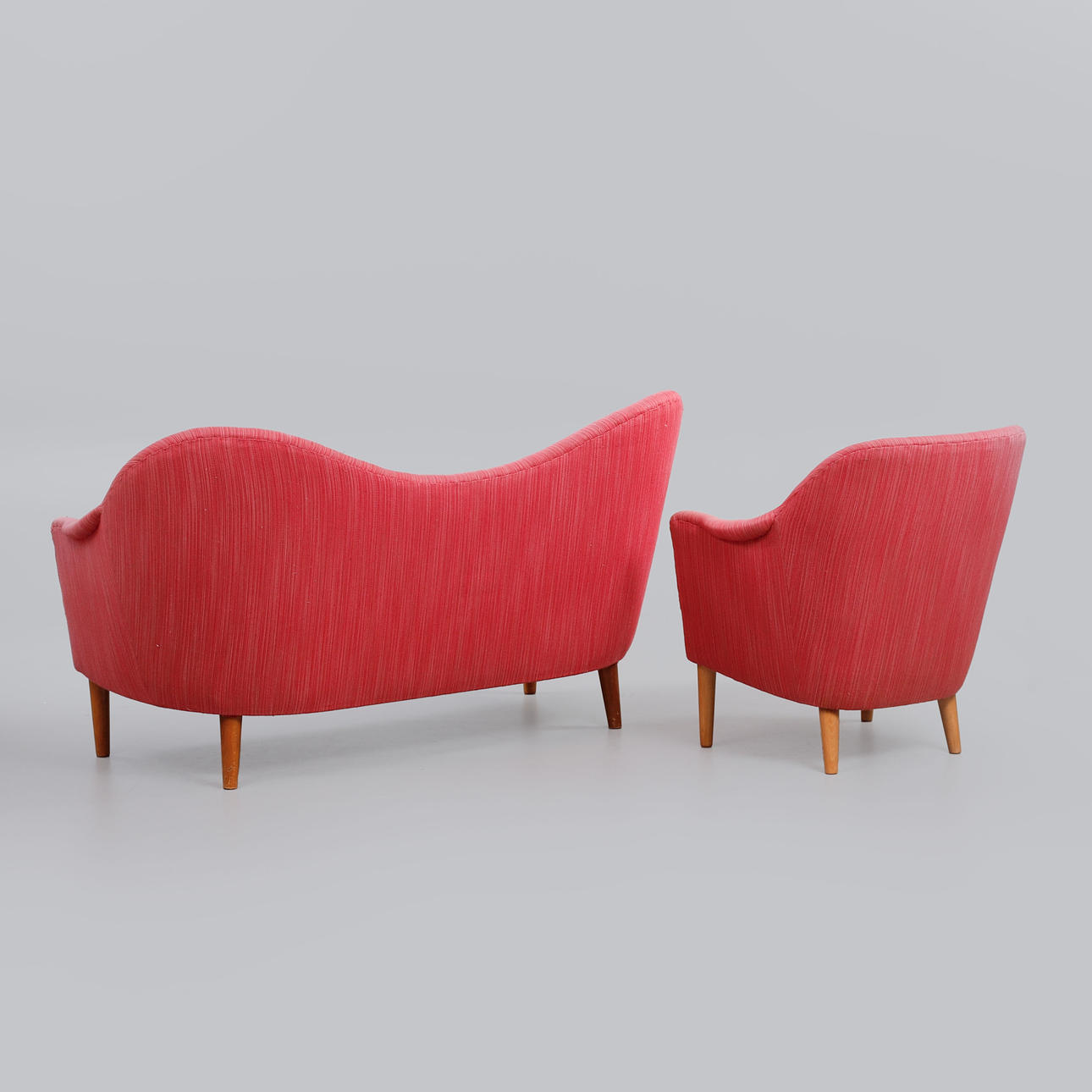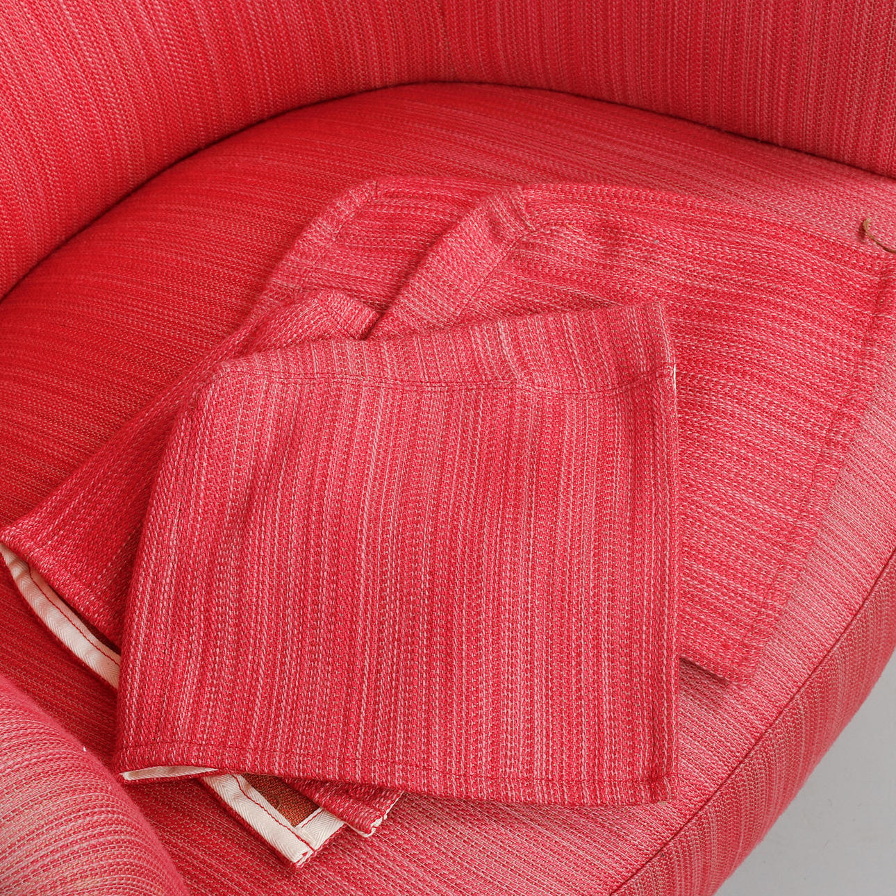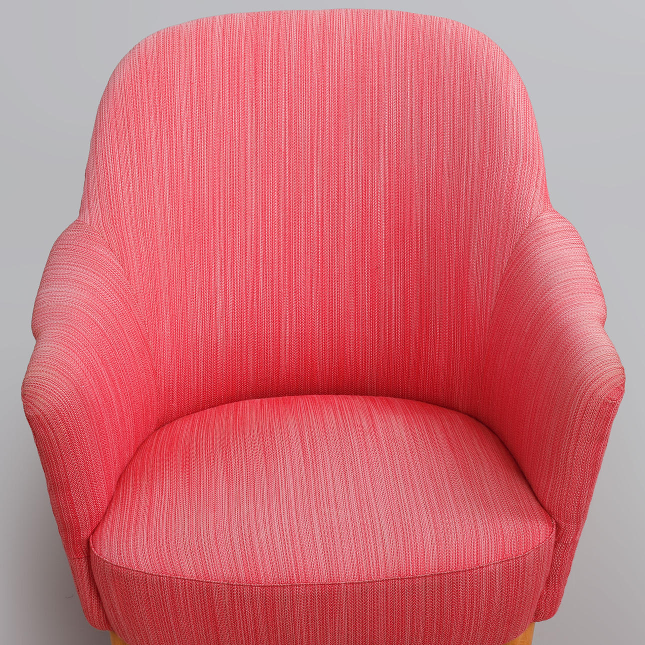 Pink fabric. Sofa, Length140, seat height 40, depth 65, height 100 cm. Armchair, width 75, seat height 40, depth 65, height 80 cm.