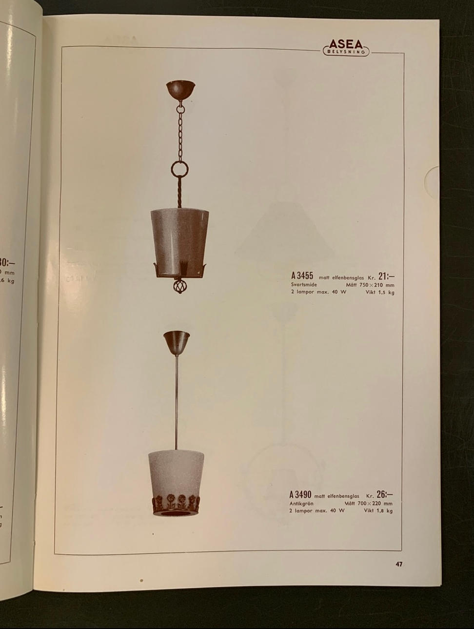 4623535. CEILING LAMP, bronze with glass shade, ASEA 1947.