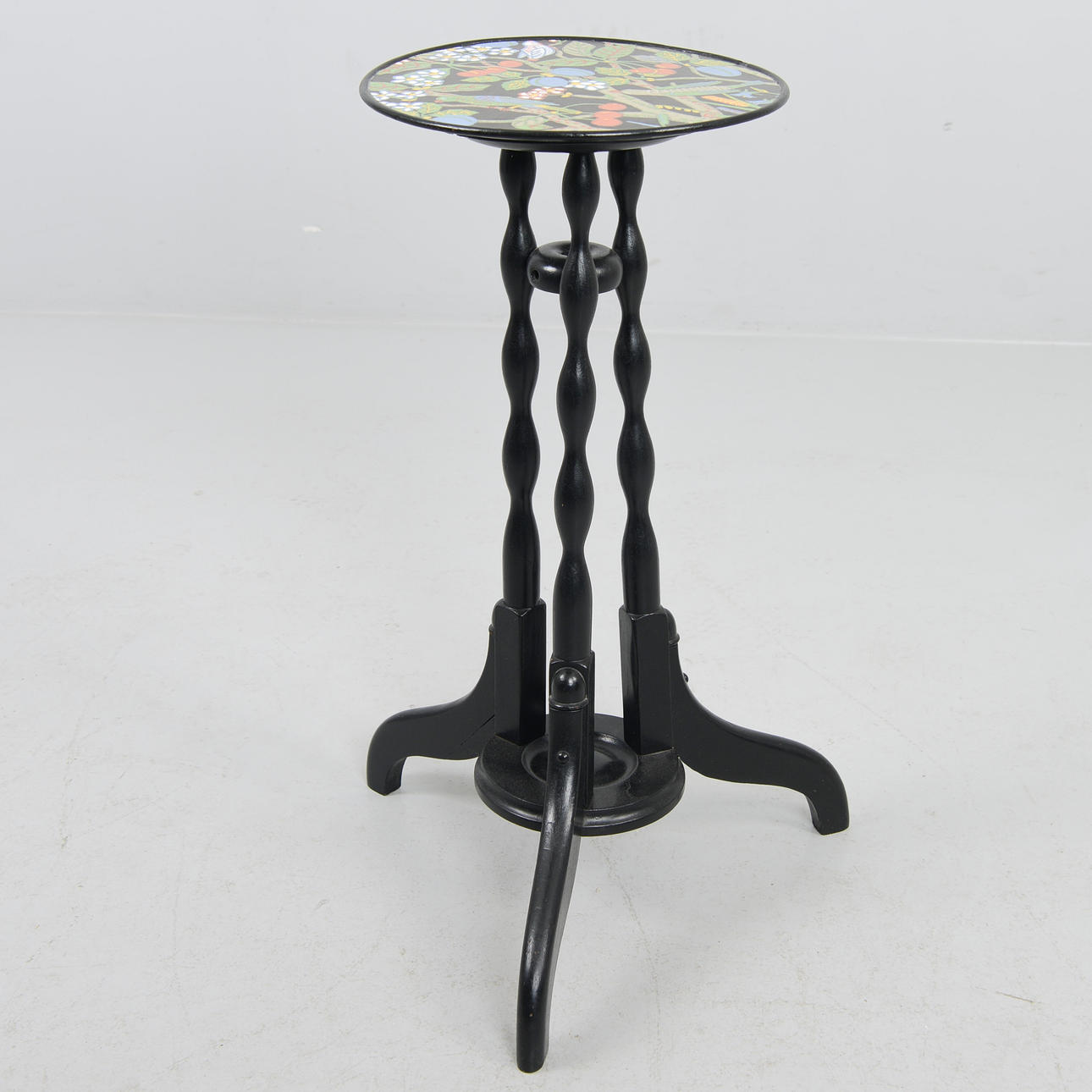 Top covered with Josef Frank's wallpaper "Paradiset", Firma Svenskt Tenn. Diameter 32 cm. Height 70 cm.