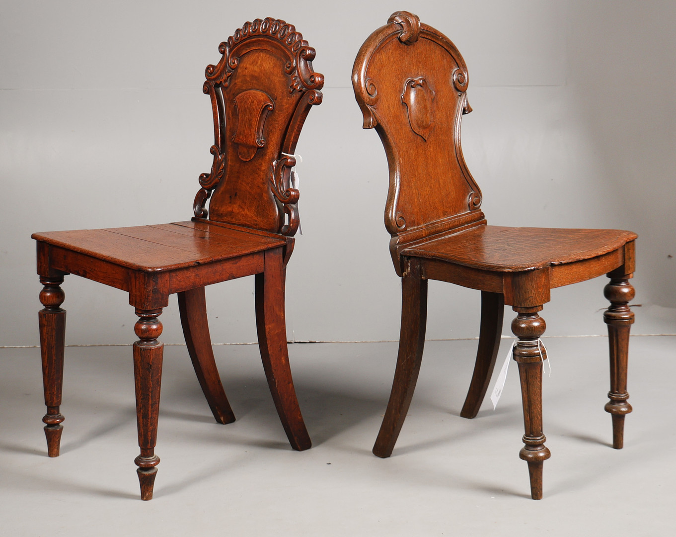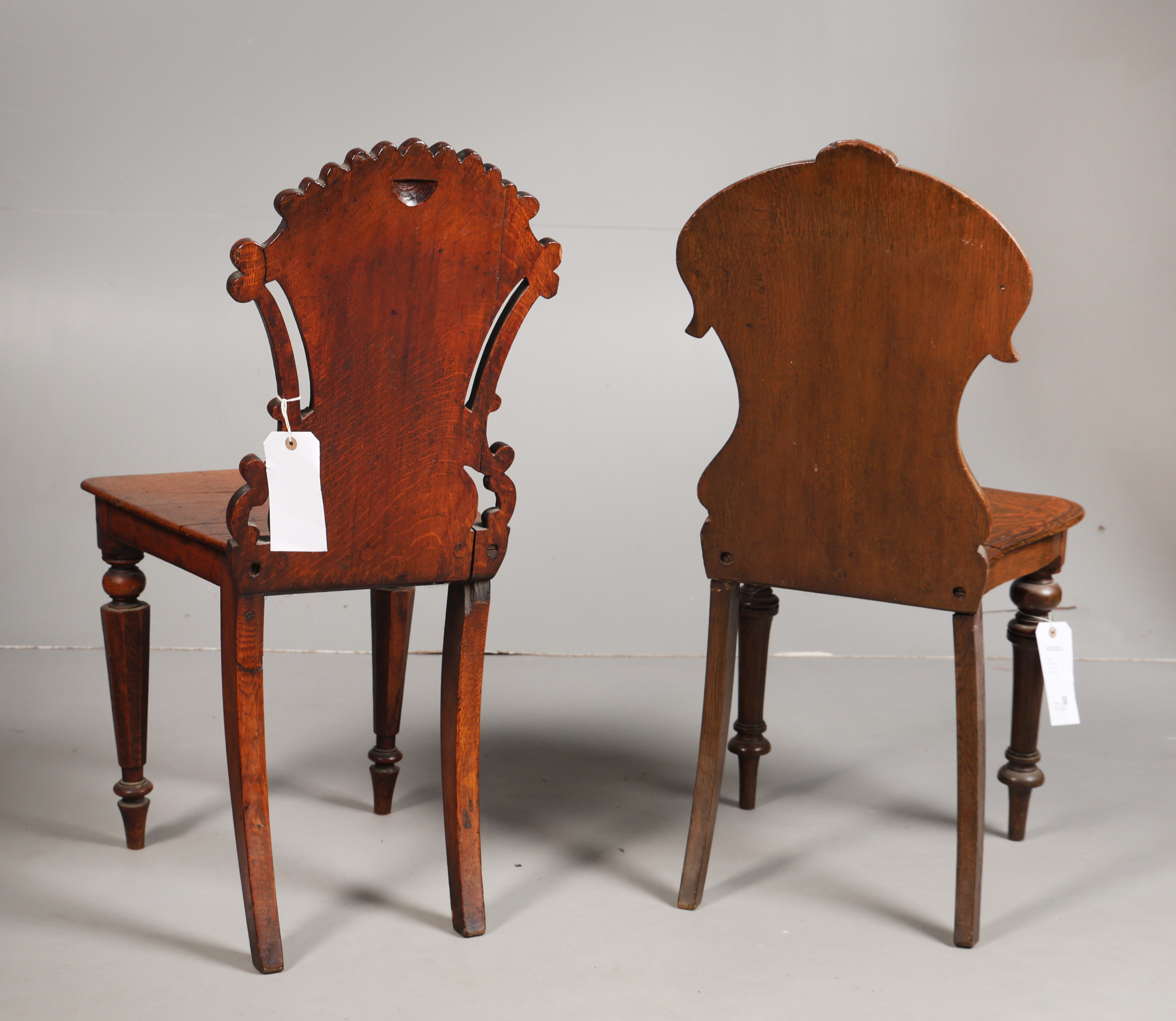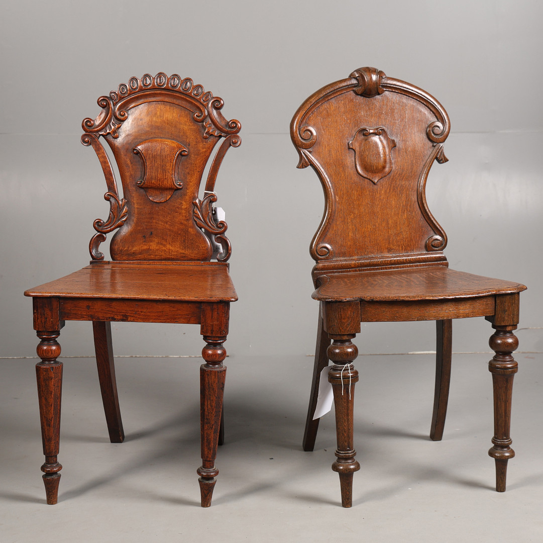 4633003. TWO VICTORIAN OAK HALL CHAIRS (2).