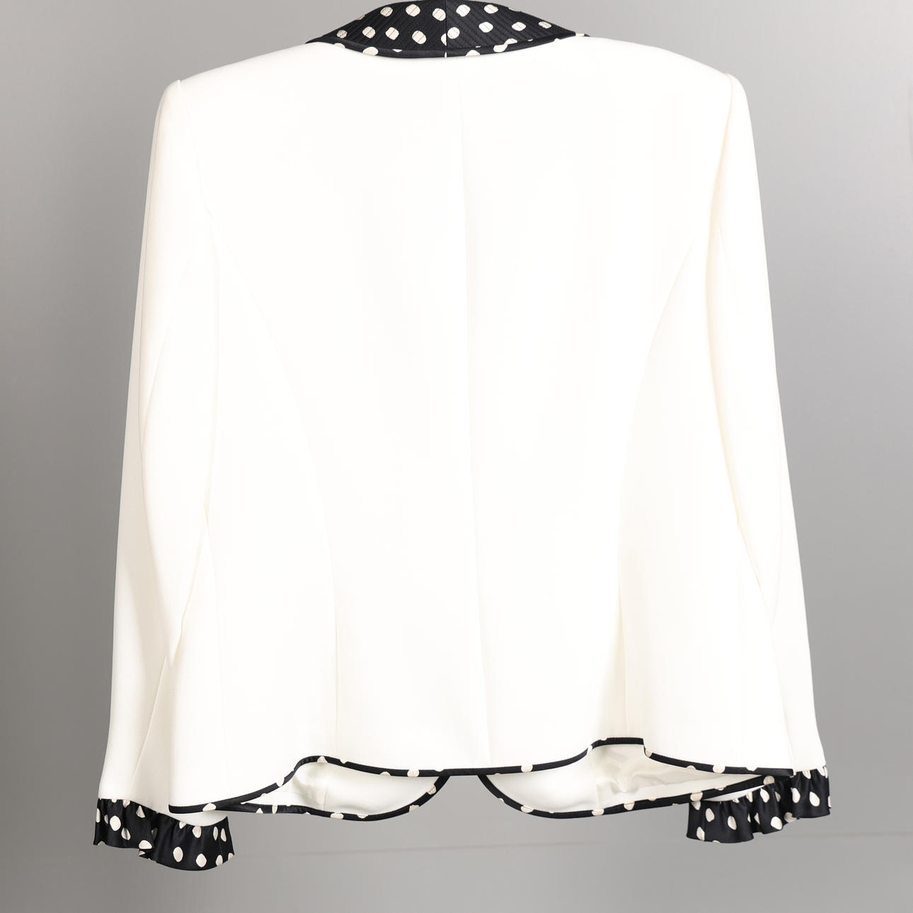 The white jacket with black and white trim, no size label, approx. size 10/12.