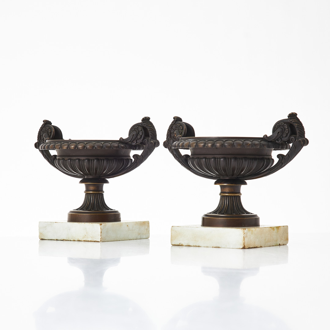 4635460. A pair of bronze TAZZOR, France, 18th/20th century, with handrails, mounted on marble slab.