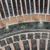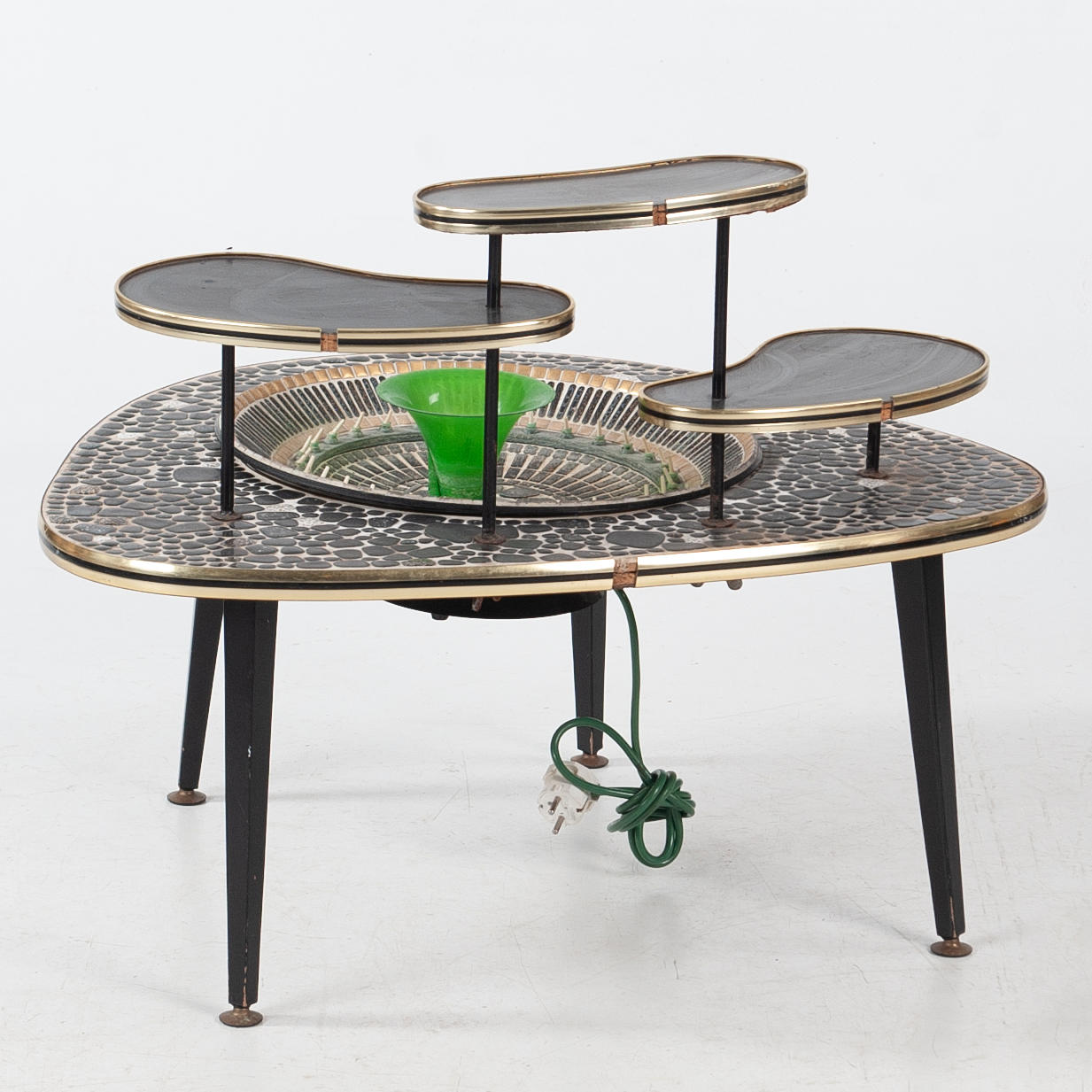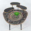Flower table with essays upholstered with mosaics. fountain in the middle