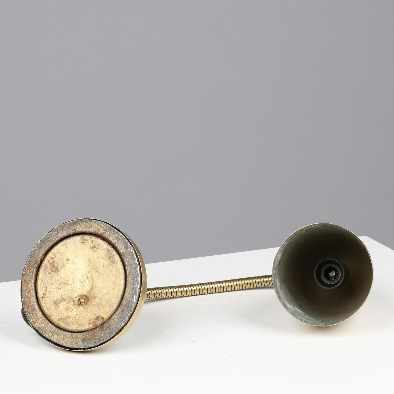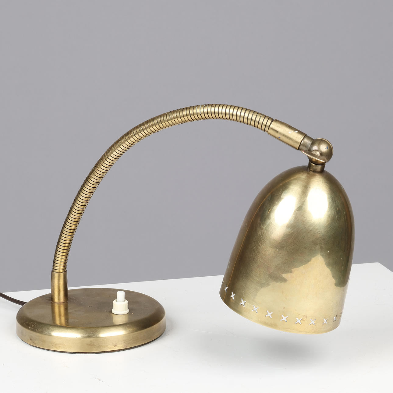 4641762. Flexible brass table lamp, adjustable lampshade with cross-shaped perforations, presumably Scandinavian lamp manufacturer, 1940/50s.