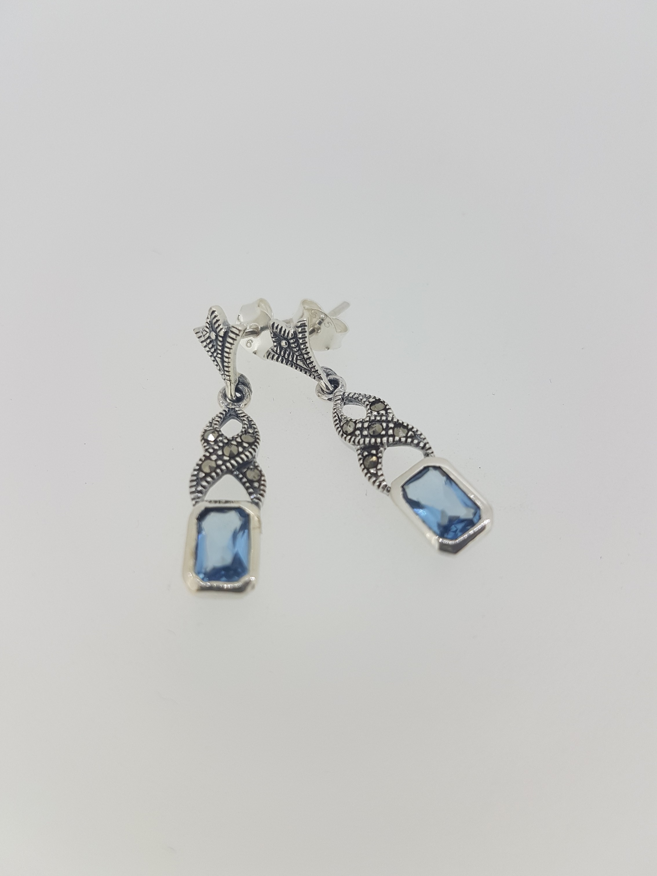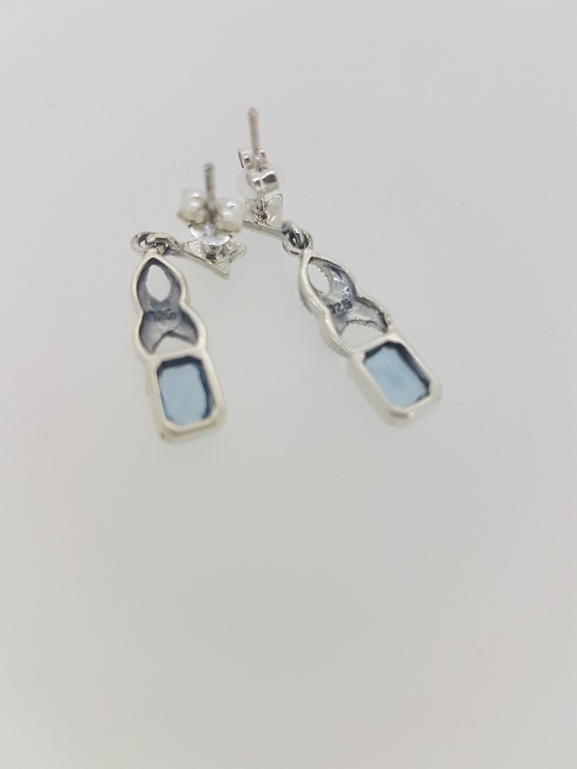 466037. SILVER & MARQUISITE & BLUE STONE EARRINGS.