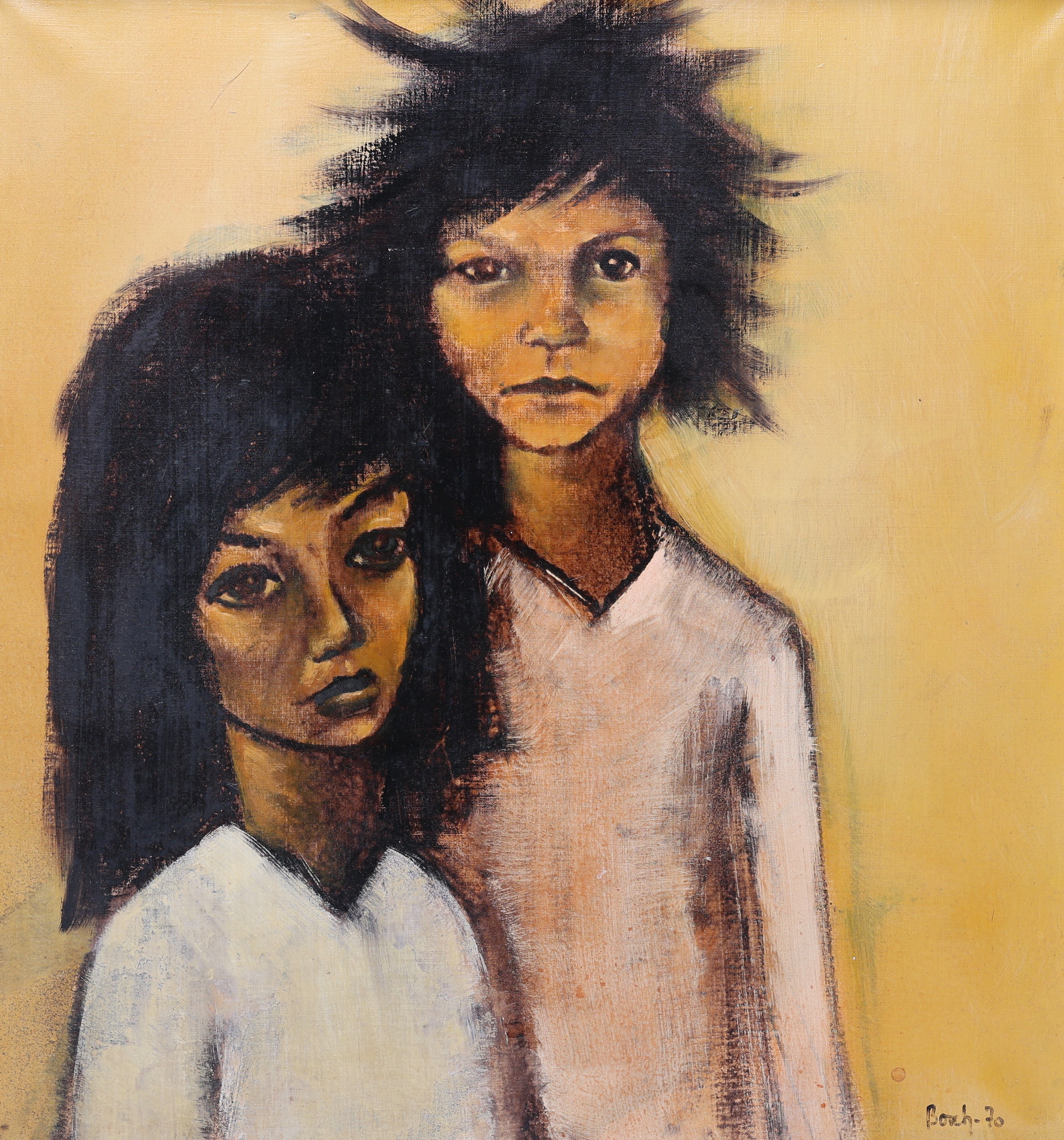 4662448. OIL ON CANVAS. Portrait of 2 children, signed Borch, dated 70.