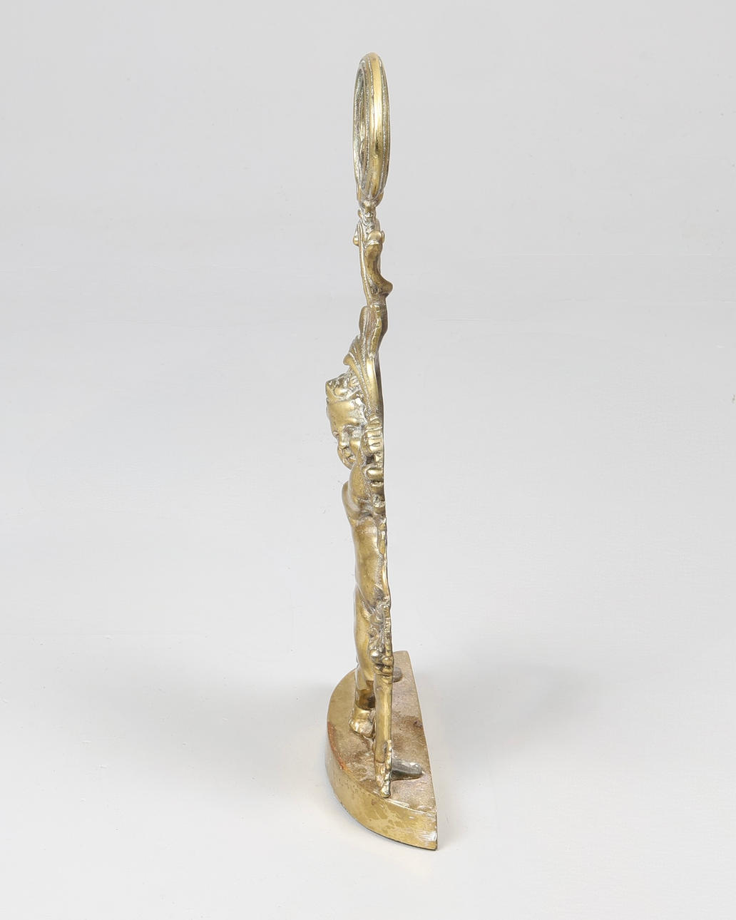 Modelled as a cherub with grapes, and scrolling foliate handle, H.49cm.