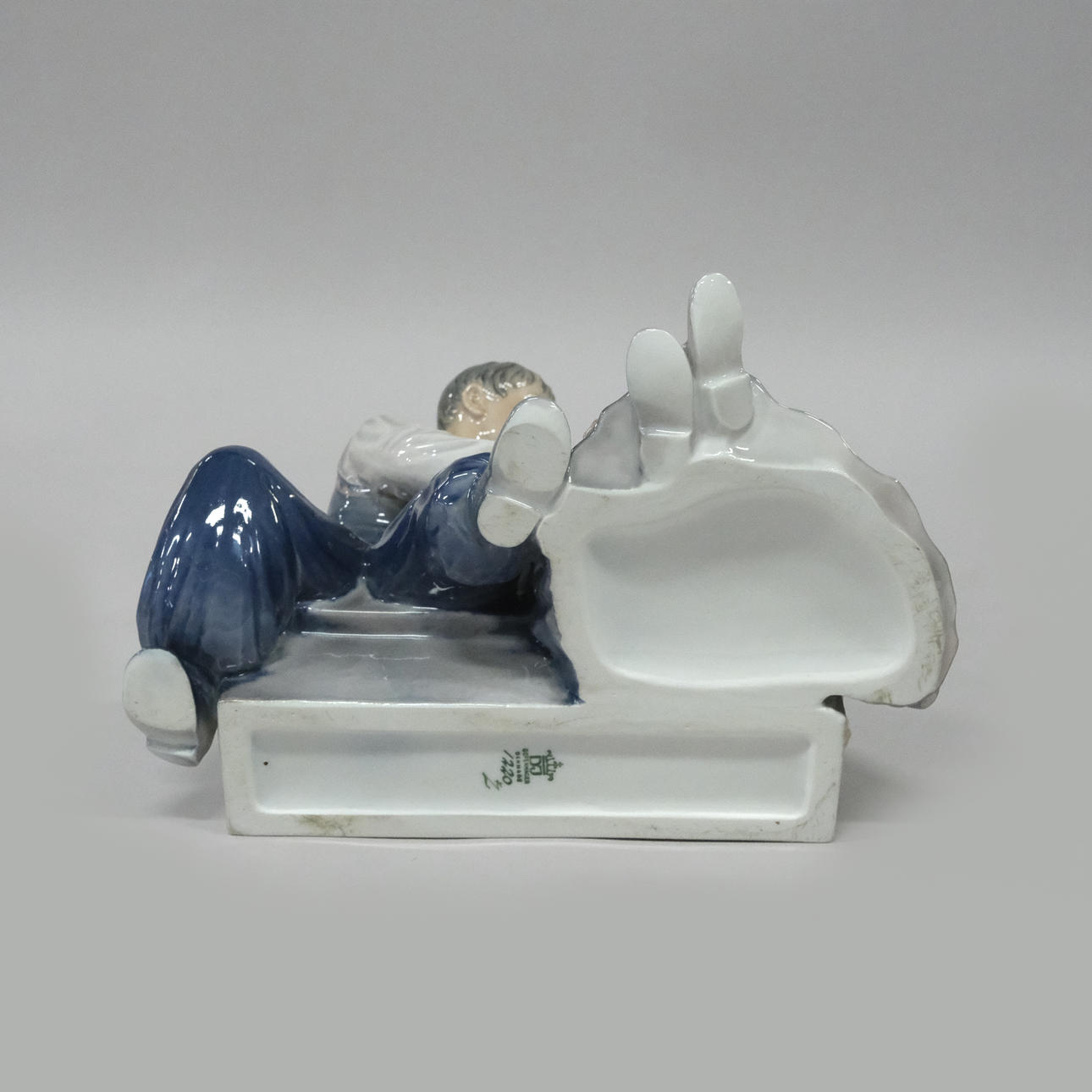 Porcelain with painting in colours under the glaze, stamped in green DJ under crown, COPENHAGEN DENMARK, model no. 1220, mid 20th century, height 15,5, width 26 and depth 23 cm.