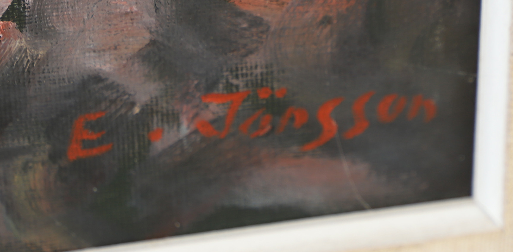 4668299. OIDENTIFIERAD KONSTNÄR. Landscape with cottage, oil on canvas, signed E. Jönsson.