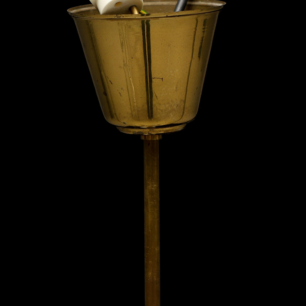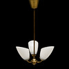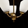 Three arms with cups in frosted glass. Brass frame. Dimensions: height 63, width 36 cm.