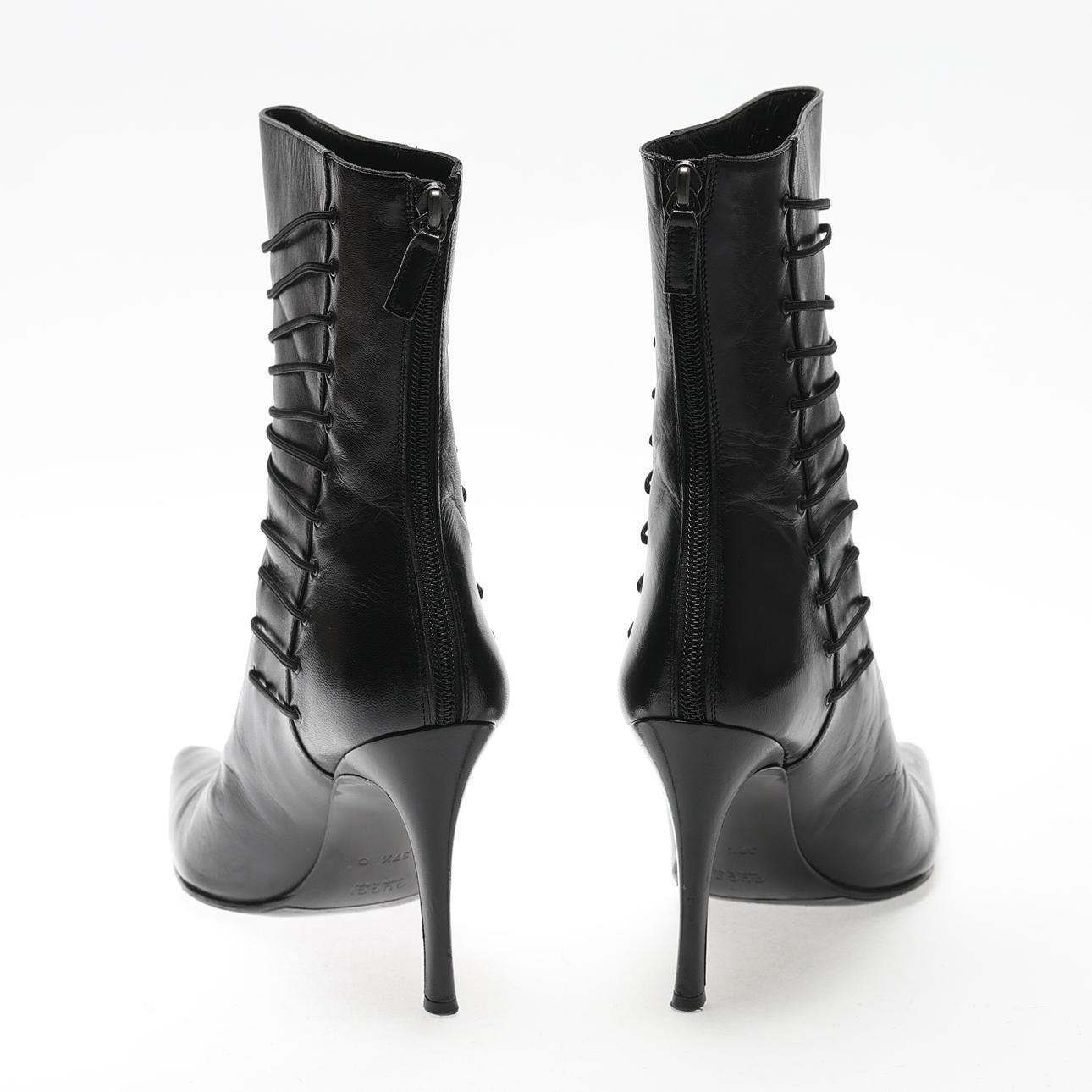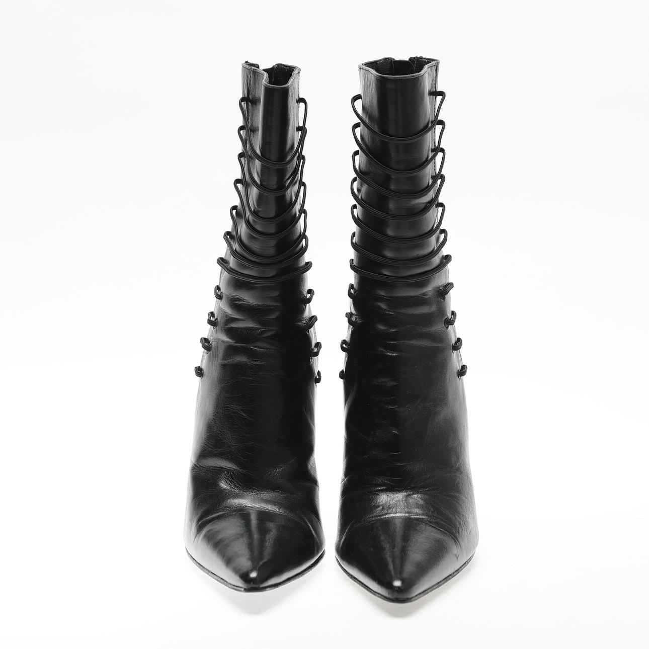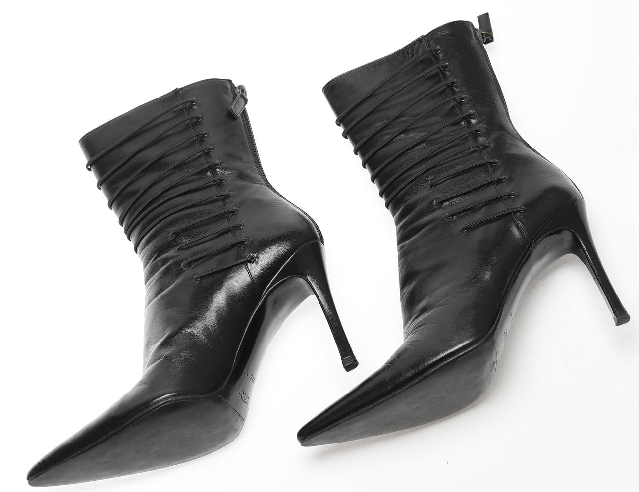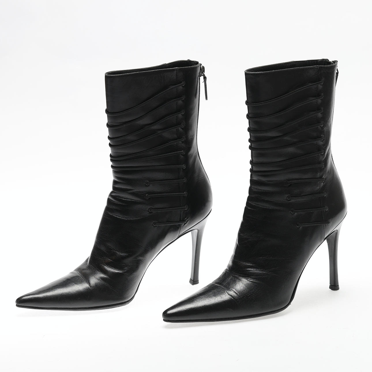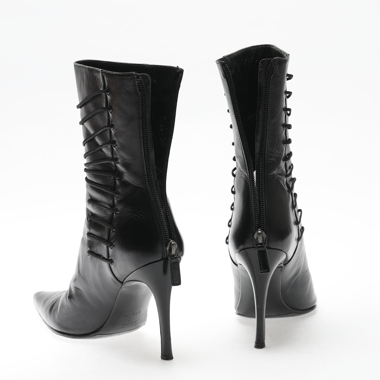 Leather boots with laces at the front, stiletto heel and zipper at the back. Marked inside with 101560 37 ½ C and GUCCI, Made in Italy. Gucci dust bags are included with both shoes.